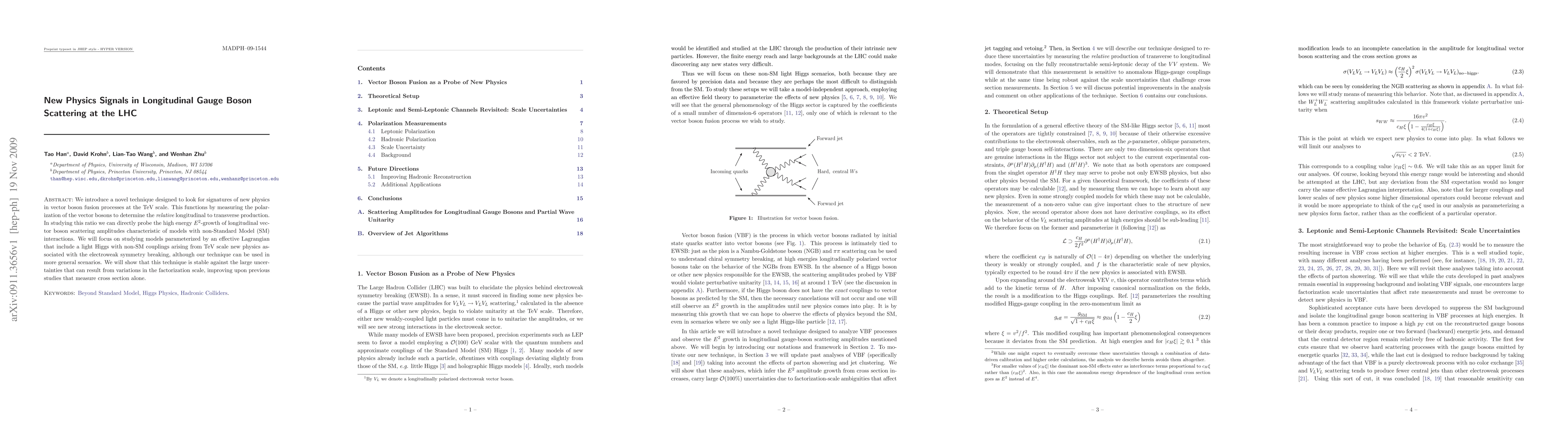This paper proposes a novel method to detect new physics in vector boson fusion at the LHC by measuring the polarization of vector bosons to determine the ratio of longitudinal to transverse production, thus probing high-energy scattering amplitudes. The technique is robust against scale uncertainties and can be applied to models beyond the Standard Model, particularly those involving a light Higgs with non-standard interactions.