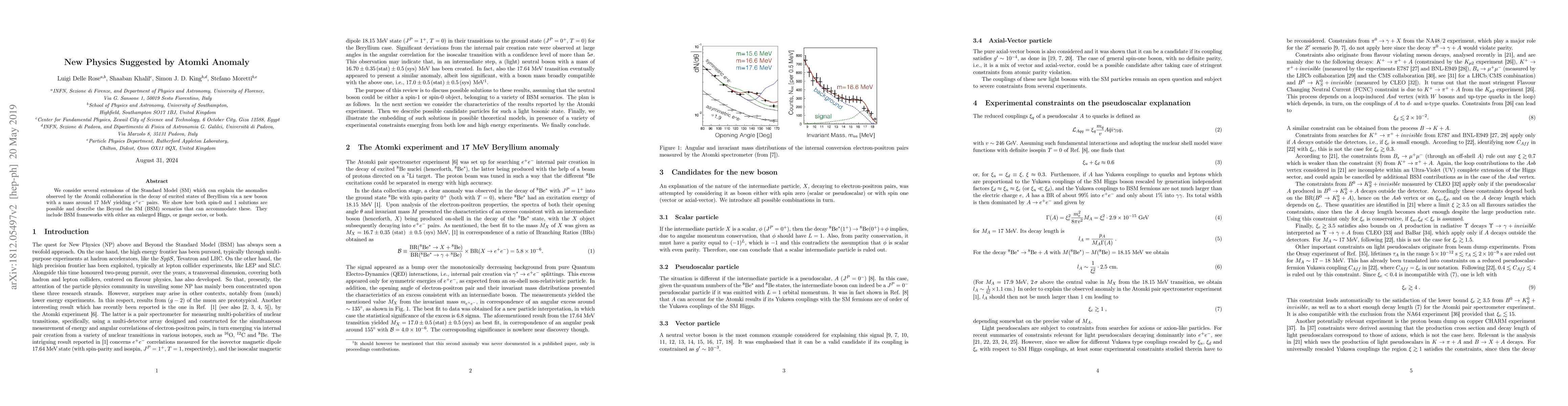 Researchers explore new physics explanations for an anomaly in Beryllium decay, proposing two possible boson masses (0 and 1) with potential connections to Higgs or gauge sector extensions of the Standard Model.