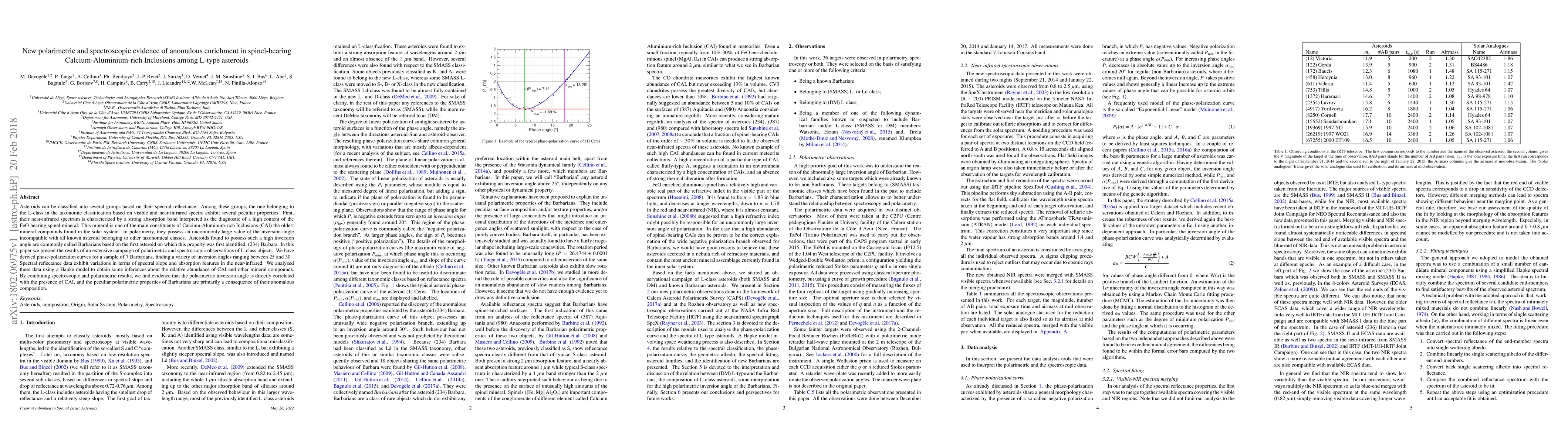Asteroids can be classified into several groups based on their spectral reflectance. Among these groups, the one belonging to the L-class in the taxonomic classification based on visible and near-infrared spectra exhibit several peculiar properties. First, their near-infrared spectrum is characterized by a strong absorption band interpreted as the diagnostic of a high content of the FeO bearing spinel mineral. This mineral is one of the main constituents of Calcium-Aluminum-rich Inclusions (CAI) the oldest mineral compounds found in the solar system. In polarimetry, they possess an uncommonly large value of the inversion angle incompatible with all known asteroid belonging to other taxonomical classes. Asteroids found to possess such a high inversion angle are commonly called Barbarians based on the first asteroid on which this property was first identified, (234)~Barbara. In this paper we present the results of an extensive campaign of polarimetric and spectroscopic observations of L-class objects. We have derived phase-polarization curves for a sample of 7 Barbarians, finding a variety of inversion angles ranging between 25 and 30$^{\circ}$. Spectral reflectance data exhibit variations in terms of spectral slope and absorption features in the near-infrared. We analyzed these data using a Hapke model to obtain some inferences about the relative abundance of CAI and other mineral compounds. By combining spectroscopic and polarimetric results, we find evidence that the polarimetric inversion angle is directly correlated with the presence of CAI, and the peculiar polarimetric properties of Barbarians are primarily a consequence of their anomalous composition.