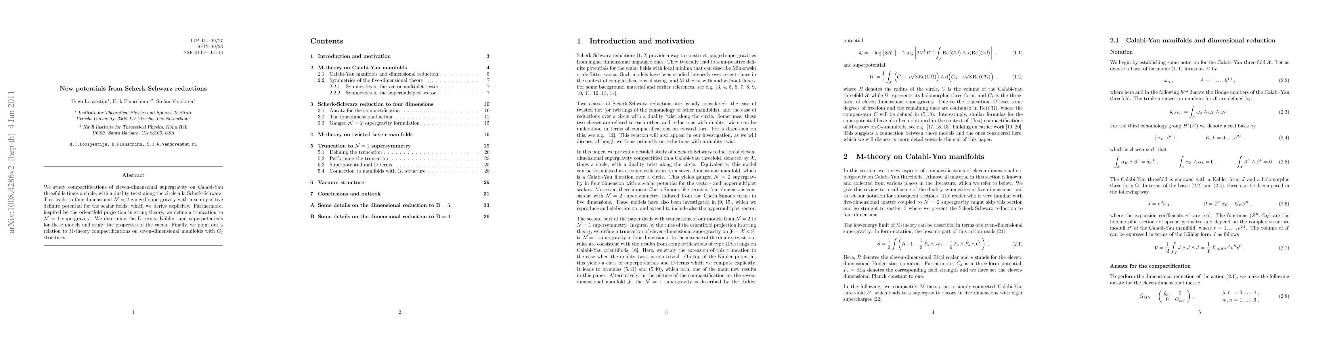 This paper explores the Scherk-Schwarz reduction of 11D supergravity on Calabi-Yau threefolds, resulting in 4D N=2 gauged supergravity with a semi-positive scalar potential. It also defines a truncation to N=1 supergravity, determines relevant D-terms and superpotentials, and examines vacuum properties, linking these findings to M-theory compactifications on G2 manifolds.