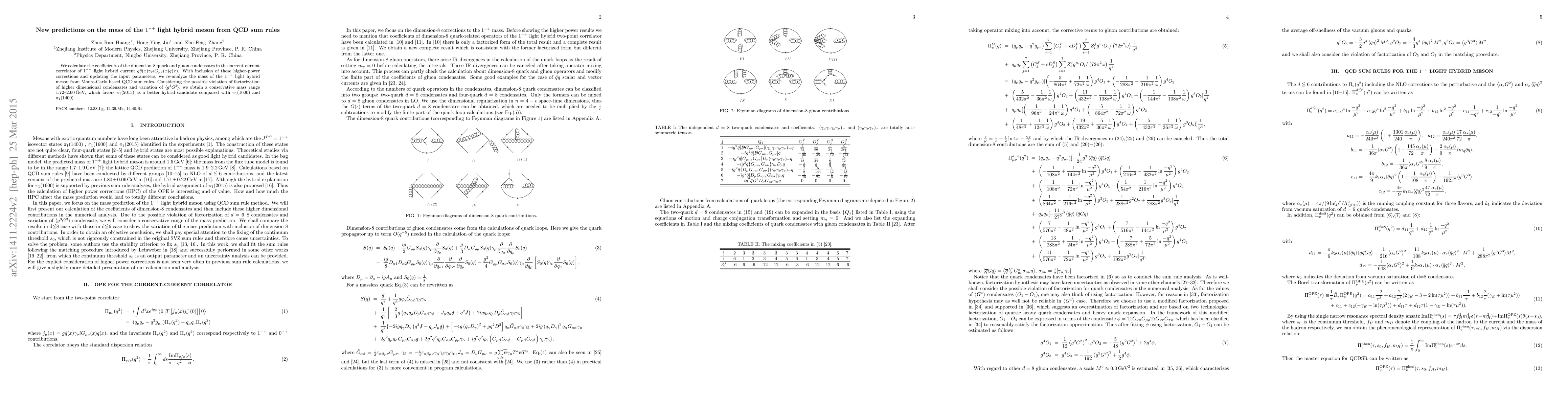 This study uses QCD sum rules and updated input parameters to predict a mass range of 1.72--2.60 GeV for the 1^(-+) light hybrid meson, suggesting u2018pi_1(2015)u2019 as a more likely hybrid candidate over u2018pi_1(1600)u2019 and u2018pi_1(1400)u2019, by considering higher-power corrections and variations in condensates.