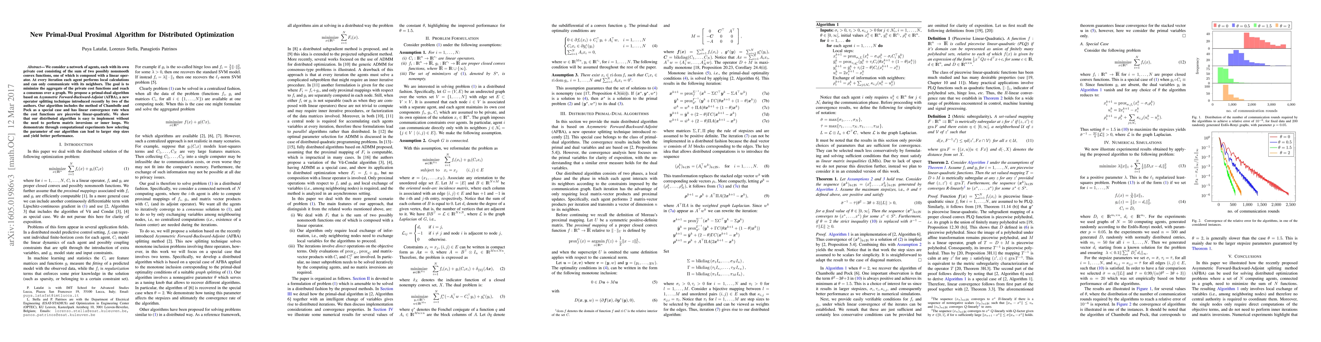 We consider a network of agents, each with its own private cost consisting of the sum of two possibly nonsmooth convex functions, one of which is composed with a linear operator. At every iteration each agent performs local calculations and can only communicate with its neighbors. The goal is to minimize the aggregate of the private cost functions and reach a consensus over a graph. We propose a primal-dual algorithm based on \emph{Asymmetric Forward-Backward-Adjoint} (AFBA), a new operator splitting technique introduced recently by two of the authors. Our algorithm includes the method of Chambolle and Pock as a special case and has linear convergence rate when the cost functions are piecewise linear-quadratic. We show that our distributed algorithm is easy to implement without the need to perform matrix inversions or inner loops. We demonstrate through computational experiments how selecting the parameter of our algorithm can lead to larger step sizes and yield better performance.
