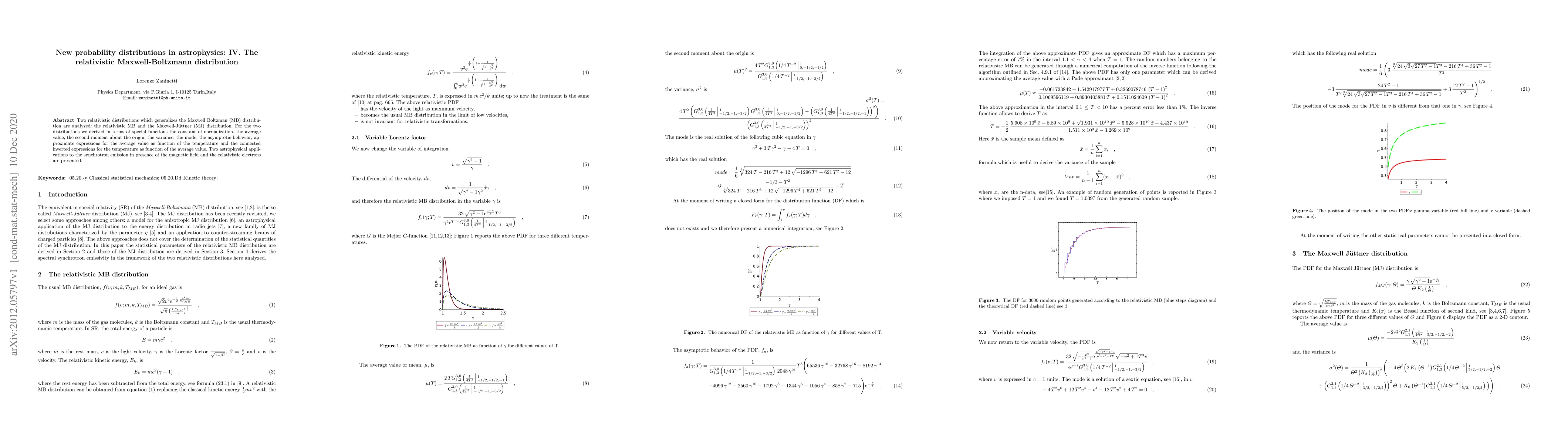 Researchers developed two new probability distributions in astrophysics that generalize existing Maxwell-Boltzmann distribution, with applications to synchrotron emission and relativistic electrons in magnetic fields.
