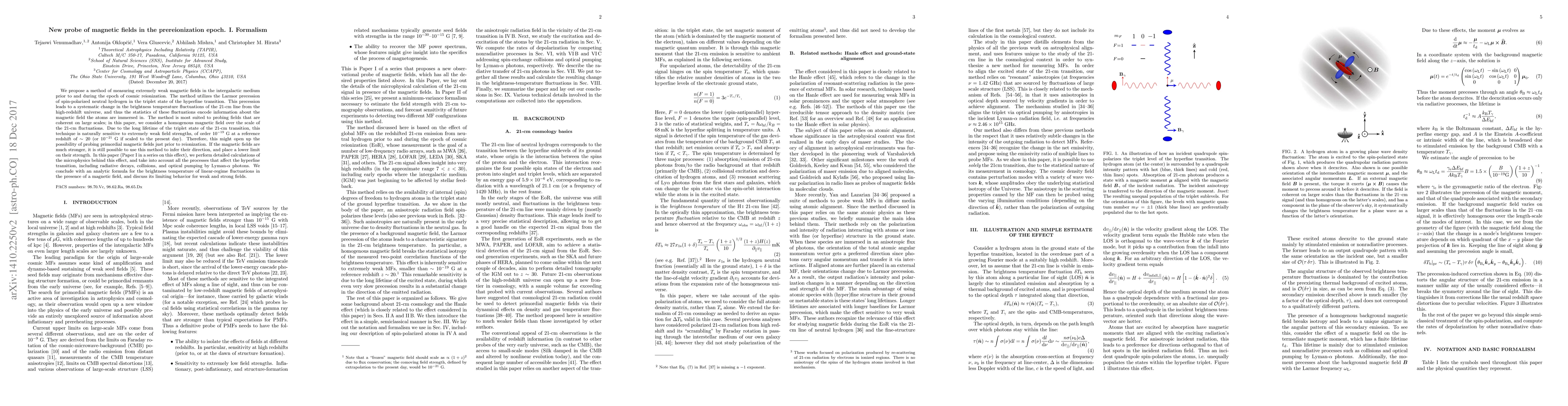 We propose a method of measuring extremely weak magnetic fields in the intergalactic medium prior to and during the epoch of cosmic reionization. The method utilizes the Larmor precession of spin-polarized neutral hydrogen in the triplet state of the hyperfine transition. This precession leads to a systematic change in the brightness temperature fluctuations of the 21-cm line from the high-redshift universe, and thus the statistics of these fluctuations encode information about the magnetic field the atoms are immersed in. The method is most suited to probing fields that are coherent on large scales; in this paper, we consider a homogenous magnetic field over the scale of the 21-cm fluctuations. Due to the long lifetime of the triplet state of the 21-cm transition, this technique is naturally sensitive to extremely weak field strengths, of order $10^{-19}$ G at a reference redshift of $\sim 20$ (or $10^{-21}$ G if scaled to the present day). Therefore, this might open up the possibility of probing primordial magnetic fields just prior to reionization. If the magnetic fields are much stronger, it is still possible to use this method to infer their direction, and place a lower limit on their strength. In this paper (Paper I in a series on this effect), we perform detailed calculations of the microphysics behind this effect, and take into account all the processes that affect the hyperfine transition, including radiative decays, collisions, and optical pumping by Lyman-$\alpha$ photons. We conclude with an analytic formula for the brightness temperature of linear-regime fluctuations in the presence of a magnetic field, and discuss its limiting behavior for weak and strong fields.