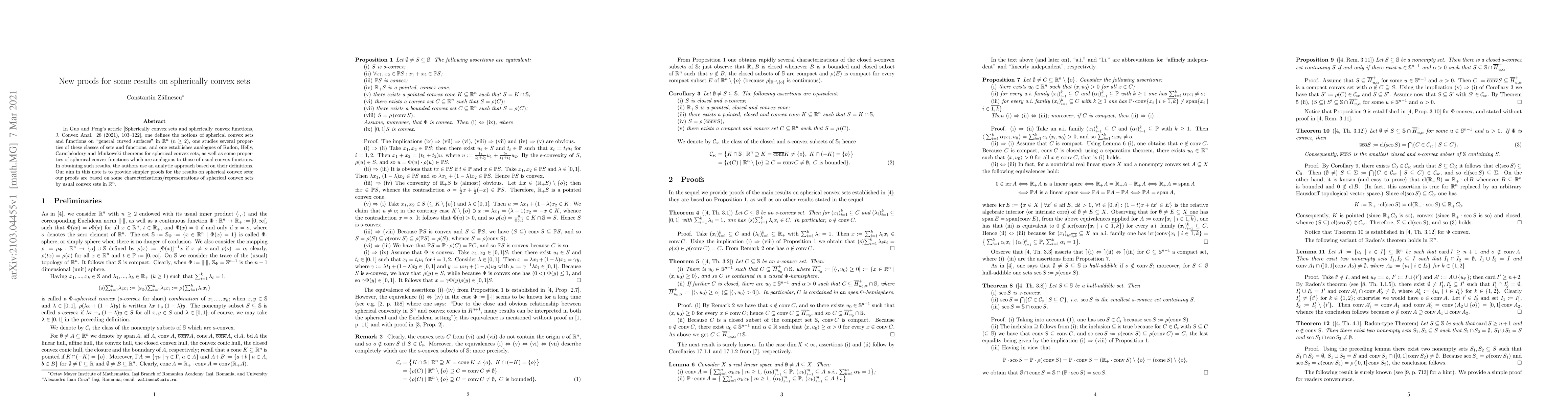 This paper provides simpler proofs for results on spherically convex sets originally established by Guo and Peng, utilizing characterizations of spherical convex sets through usual convex sets in $\mathbb{R}^{n}$. The new proofs aim to enhance the understanding of these sets by leveraging familiar convexity concepts.