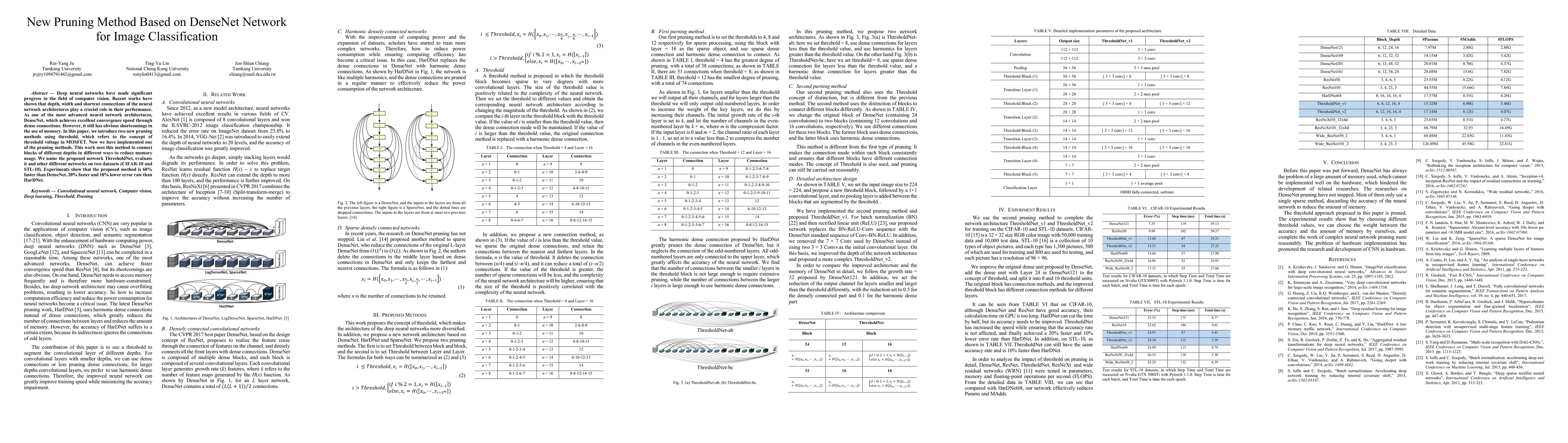 Deep neural networks have made significant progress in the field of computer vision. Recent studies have shown that depth, width and shortcut connections of neural network architectures play a crucial role in their performance. One of the most advanced neural network architectures, DenseNet, has achieved excellent convergence rates through dense connections. However, it still has obvious shortcomings in the usage of amount of memory. In this paper, we introduce a new type of pruning tool, threshold, which refers to the principle of the threshold voltage in MOSFET. This work employs this method to connect blocks of different depths in different ways to reduce the usage of memory. It is denoted as ThresholdNet. We evaluate ThresholdNet and other different networks on datasets of CIFAR10. Experiments show that HarDNet is twice as fast as DenseNet, and on this basis, ThresholdNet is 10% faster and 10% lower error rate than HarDNet.