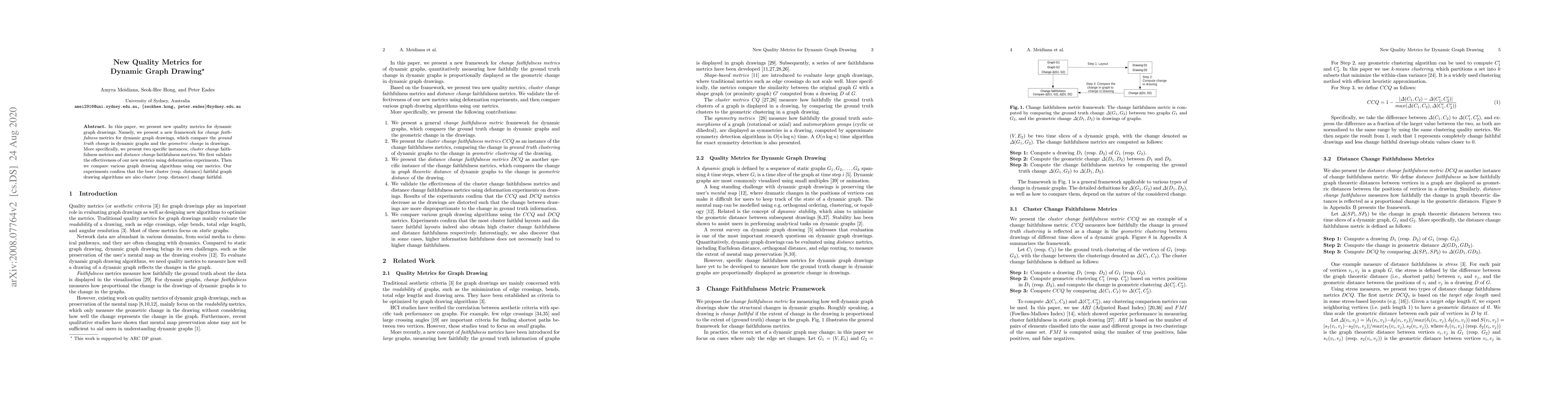 This paper introduces new quality metrics for dynamic graph drawings, specifically focusing on change faithfulness metrics that compare ground truth changes in dynamic graphs to geometric changes in their drawings. The study validates these metrics and demonstrates their effectiveness in evaluating various graph drawing algorithms.