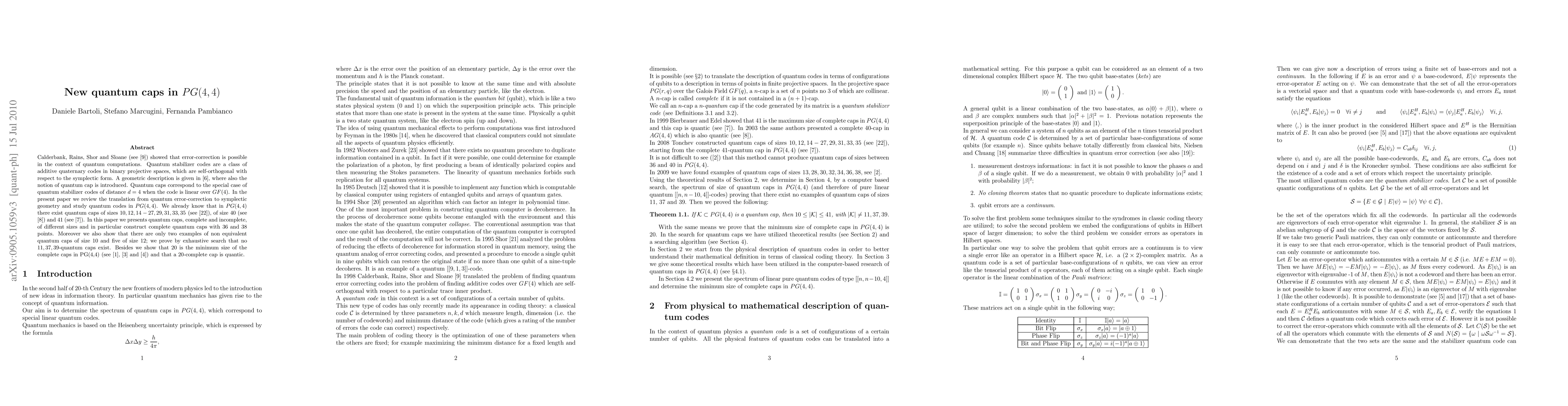 This research contributes to the understanding of quantum error-correction codes by constructing new quantum caps in PG(4,4), which are essential for developing fault-tolerant quantum computing architectures.