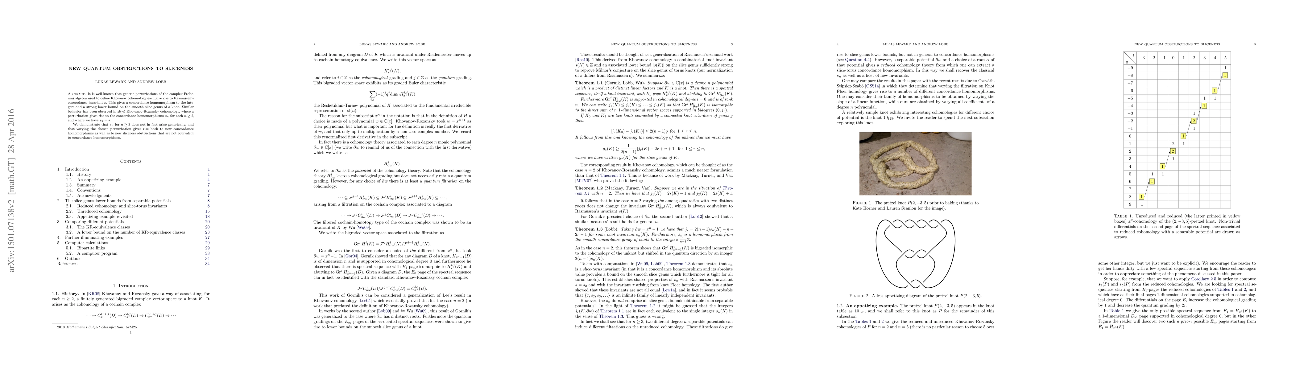 It is well-known that generic perturbations of the complex Frobenius algebra used to define Khovanov cohomology each give rise to Rasmussen's concordance invariant s. This gives a concordance homomorphism to the integers and a strong lower bound on the smooth slice genus of a knot. Similar behavior has been observed in sl(n) Khovanov-Rozansky cohomology, where a perturbation gives rise to the concordance homomorphisms s_n for each n >= 2, and where we have s_2 = s. We demonstrate that s_n for n >= 3 does not in fact arise generically, and that varying the chosen perturbation gives rise both to new concordance homomorphisms as well as to new sliceness obstructions that are not equivalent to concordance homomorphisms.