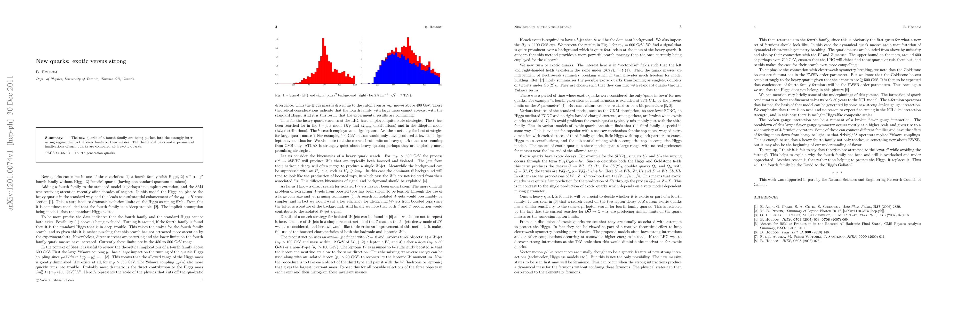 The paper explores the possibility of a fourth family of quarks being pushed into a strongly interacting regime due to lower mass limits. It compares theoretical and experimental aspects of these new quarks with exotic quarks.