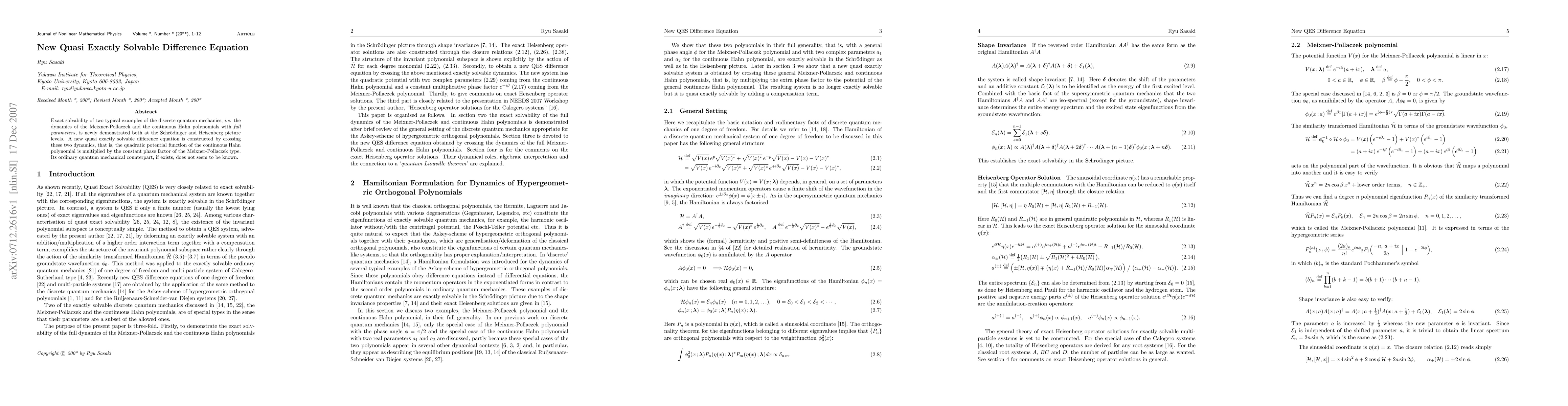 Exact solvability of two typical examples of the discrete quantum mechanics, i.e. the dynamics of the Meixner-Pollaczek and the continuous Hahn polynomials with full parameters, is newly demonstrated both at the Schroedinger and Heisenberg picture levels. A new quasi exactly solvable difference equation is constructed by crossing these two dynamics, that is, the quadratic potential function of the continuous Hahn polynomial is multiplied by the constant phase factor of the Meixner-Pollaczek type. Its ordinary quantum mechanical counterpart, if exists, does not seem to be known.