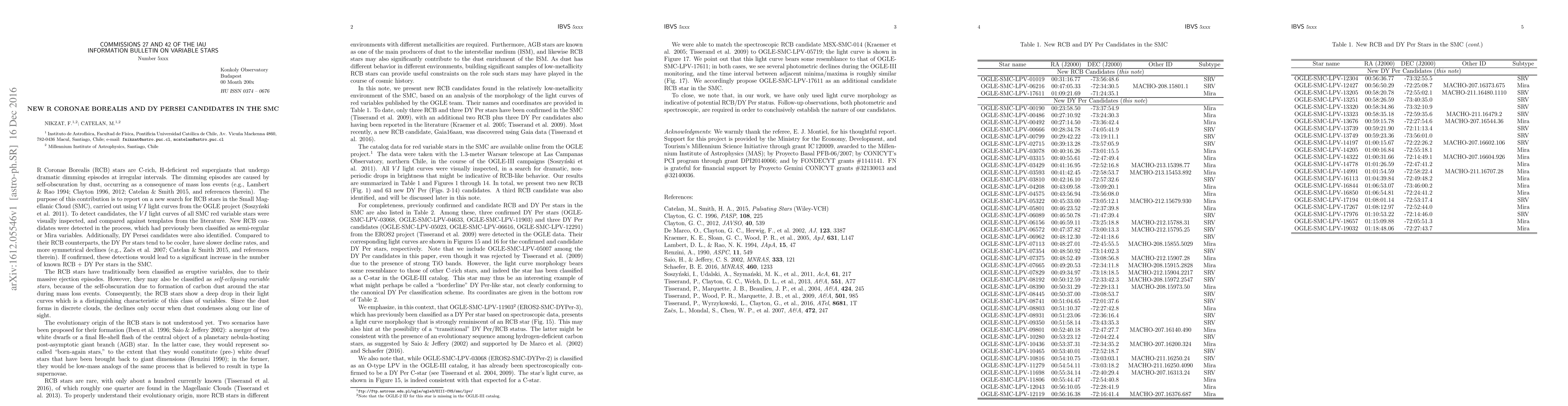 This paper identifies 3 new R Coronae Borealis and 63 new DY Persei candidates in the Small Magellanic Cloud using OGLE data, focusing on their characteristic brightness drops. Follow-up observations are required to confirm the classifications and note the potential existence of borderline and transitional stars.