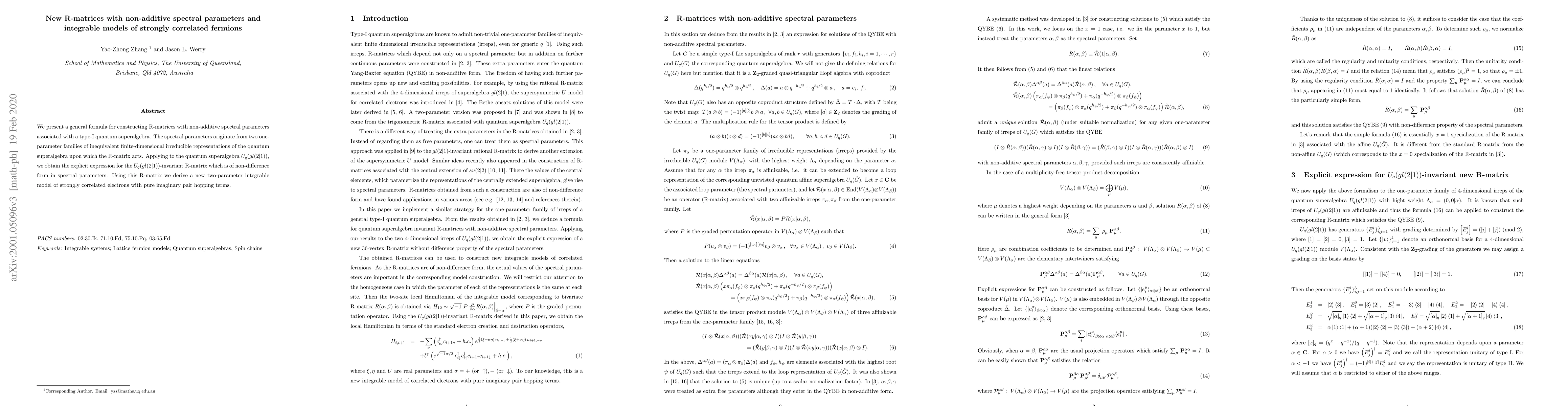 Researchers developed a new R-matrix formula for strongly correlated fermions, leading to an integrable model with non-additive spectral parameters.