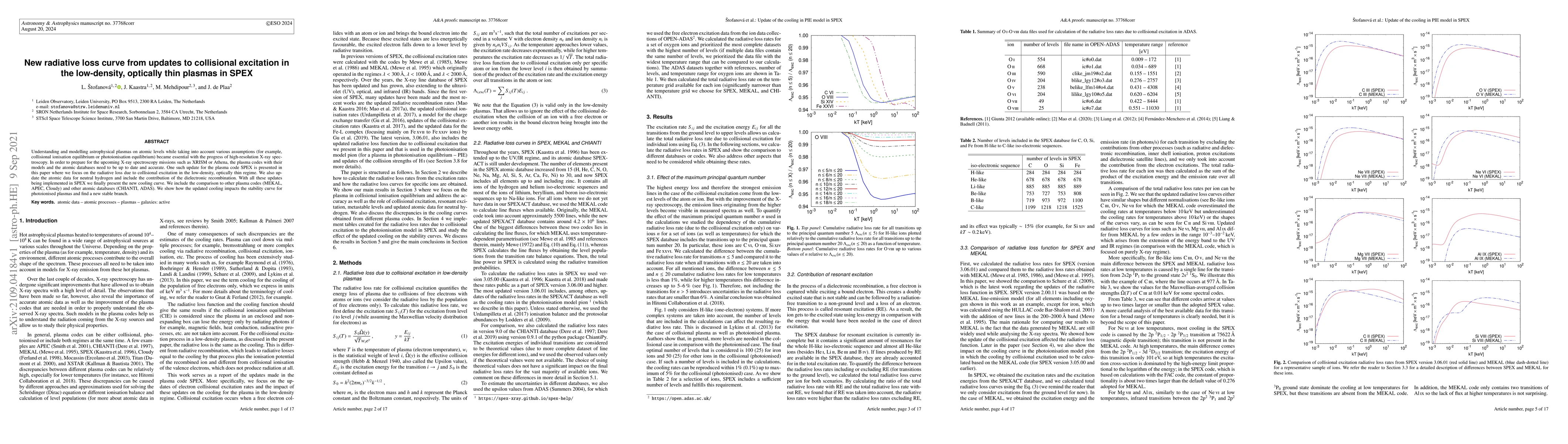 This paper updates the plasma code SPEX to improve the modelling of radiative losses in low-density, optically thin astrophysical plasmas, focusing on collisional excitation and including new atomic data for neutral hydrogen and dielectronic recombination. The new cooling curve is compared with other codes and databases, revealing a new stable branch in the stability curve for photoionised plasmas.
