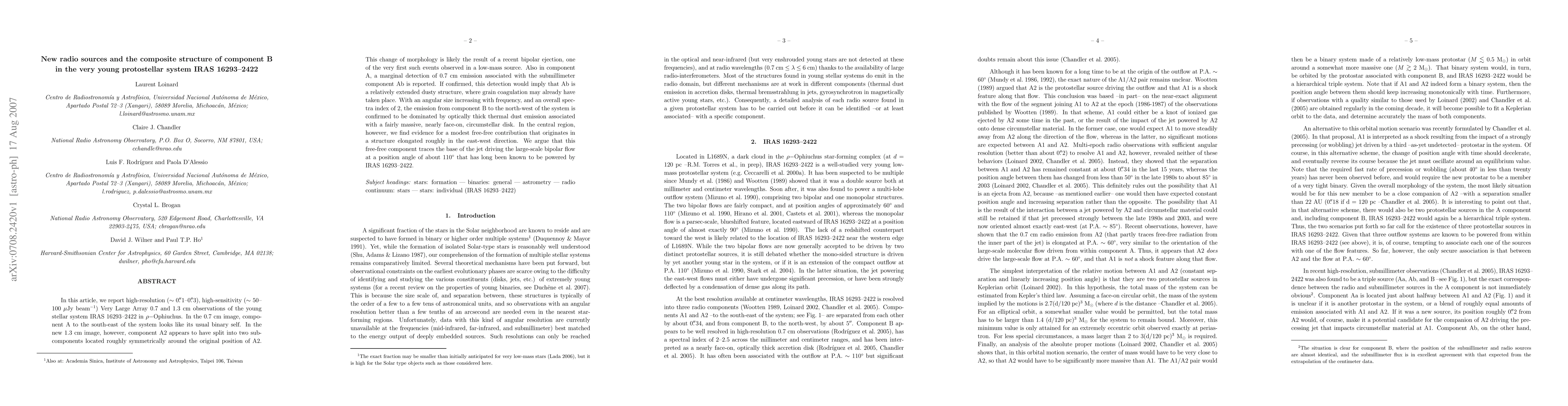 In this article, we report high-resolution (~ 0.1" -- 0.3"), high-sensitivity (~ 50 -100 uJy beam-1) Very Large Array 0.7 and 1.3 cm observations of the young stellar system IRAS 16293-2422 in rho-Ophiuchus. In the 0.7 cm image, component A to the south-east of the system looks like its usual binary self. In the new 1.3 cm image, however, component A2 appears to have split into two sub-components located roughly symmetrically around the original position of A2. This change of morphology is likely the result of a recent bipolar ejection, one of the very first such events observed in a low-mass source. Also in component A, a marginal detection of 0.7 cm emission associated with the submillimeter component Ab is reported. If confirmed, this detection would imply that Ab is a relatively extended dusty structure, where grain coagulation may already have taken place. With an angular size increasing with frequency, and an overall spectra index of 2, the emission from component B to the north-west of the system is confirmed to be dominated by optically thick thermal dust emission associated with a fairly massive, nearly face-on, circumstellar disk. In the central region, however, we find evidence for a modest free-free contribution that originates in a structure elongated roughly in the east-west direction. We argue that this free-free component traces the base of the jet driving the large-scale bipolar flow at a position angle of about 110 degrees that has long been known to be powered by IRAS 16293-2422.