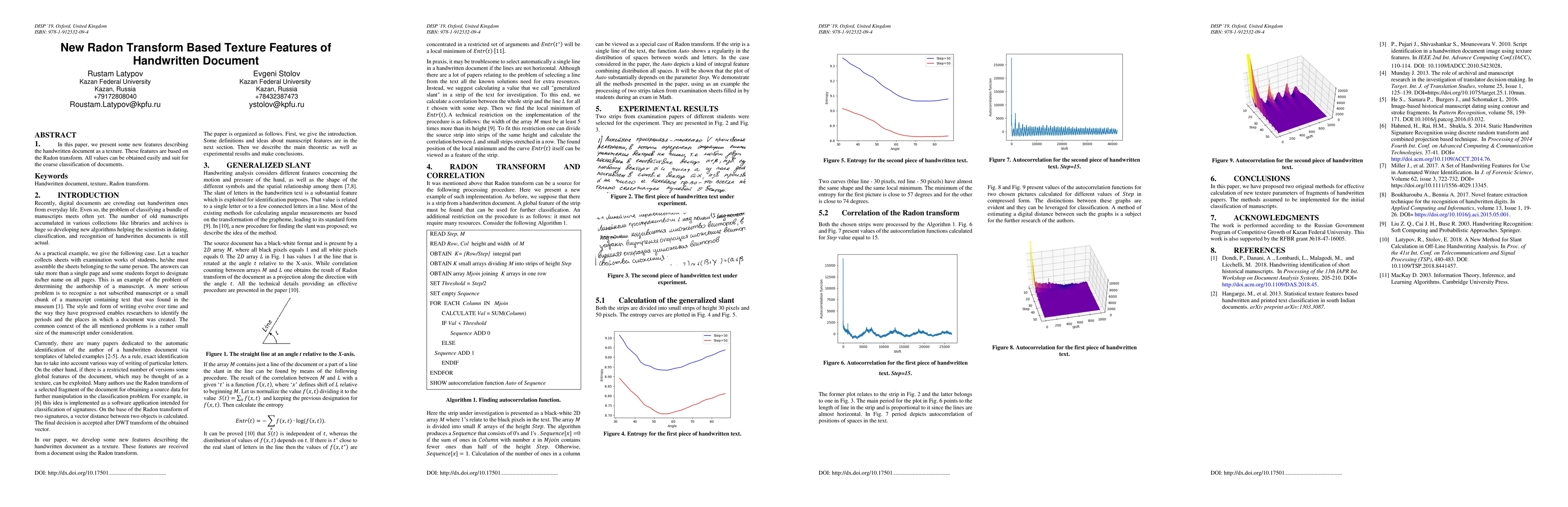 In this paper, we present some new features describing the handwritten document as a texture. These features are based on the Radon transform. All values can be obtained easily and suit for the coarse classification of documents.