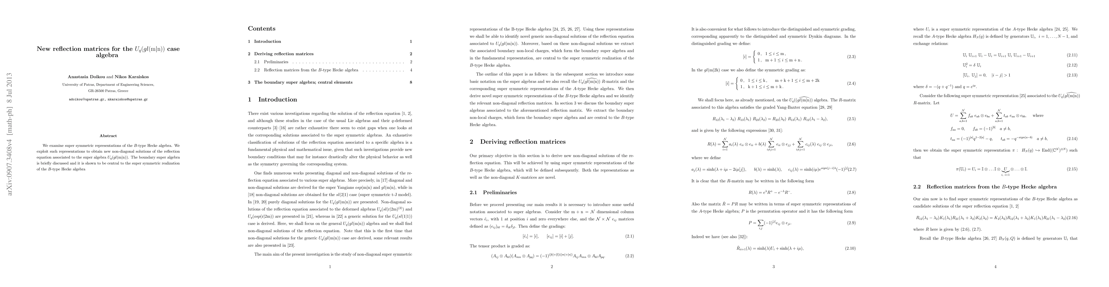 This paper explores supersymmetric representations of the B-type Hecke algebra to derive new non-diagonal solutions for the reflection equation linked to the super algebra U_q(gl(m|n)). The study also touches on the boundary super algebra, demonstrating its central role in the realization of the B-type Hecke algebra.