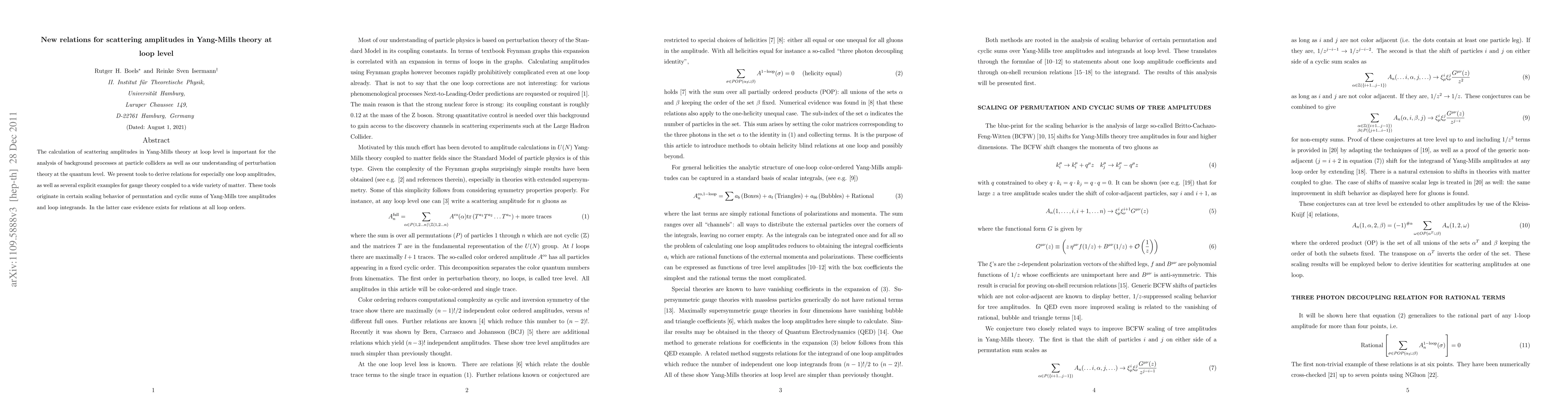 The calculation of scattering amplitudes in Yang-Mills theory at loop level is important for the analysis of background processes at particle colliders as well as our understanding of perturbation theory at the quantum level. We present tools to derive relations for especially one loop amplitudes, as well as several explicit examples for gauge theory coupled to a wide variety of matter. These tools originate in certain scaling behavior of permutation and cyclic sums of Yang-Mills tree amplitudes and loop integrands. In the latter case evidence exists for relations at all loop orders.