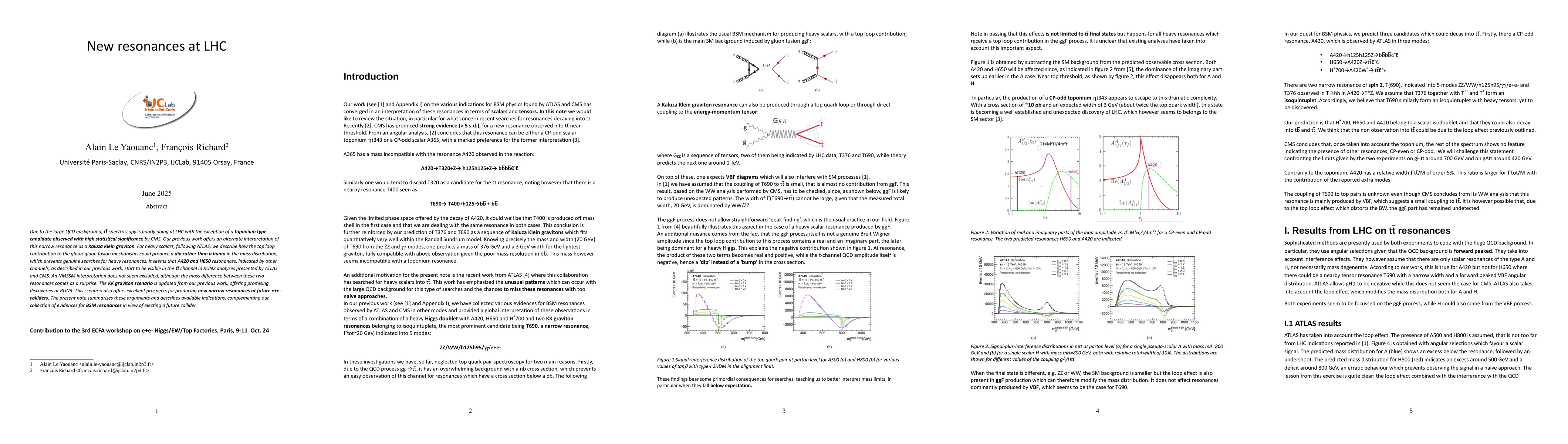 Researchers at LHC have discovered new resonances with high statistical significance, including a candidate for a 'toponium' particle and two heavy scalars, challenging current searches for scalar resonances.
