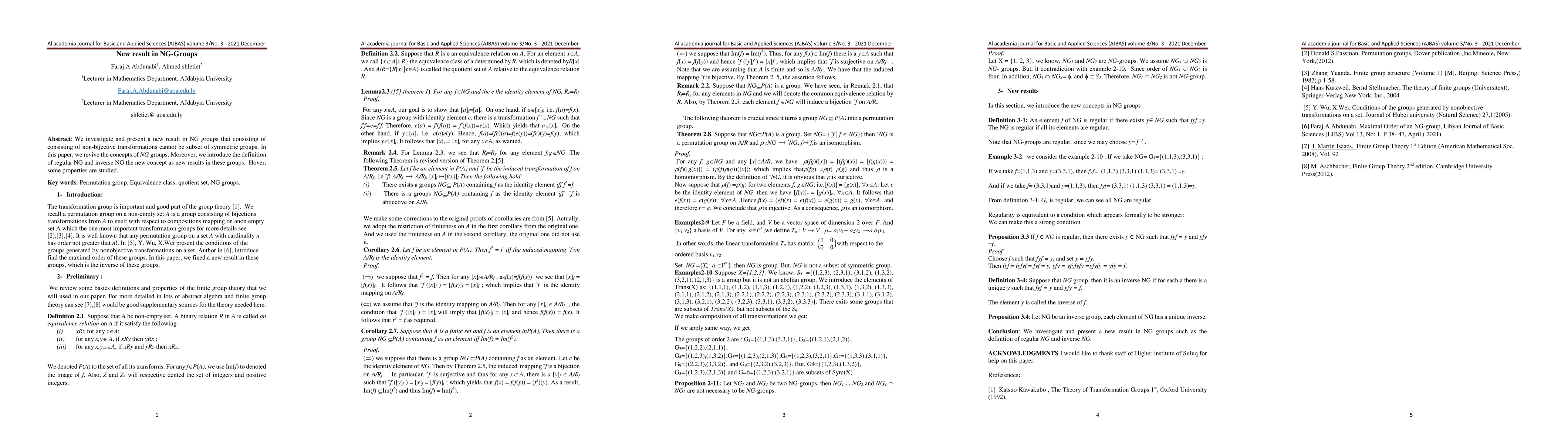 We investigate and present a new result in NG groups that consisting of consisting of non-bijective transformations cannot be subset of symmetric groups. In this paper, we revive the concepts of NG groups. Moreover, we introduce the definition of regular NG and inverse NG the new concept as new results in these groups. Hover, some properties are studied.