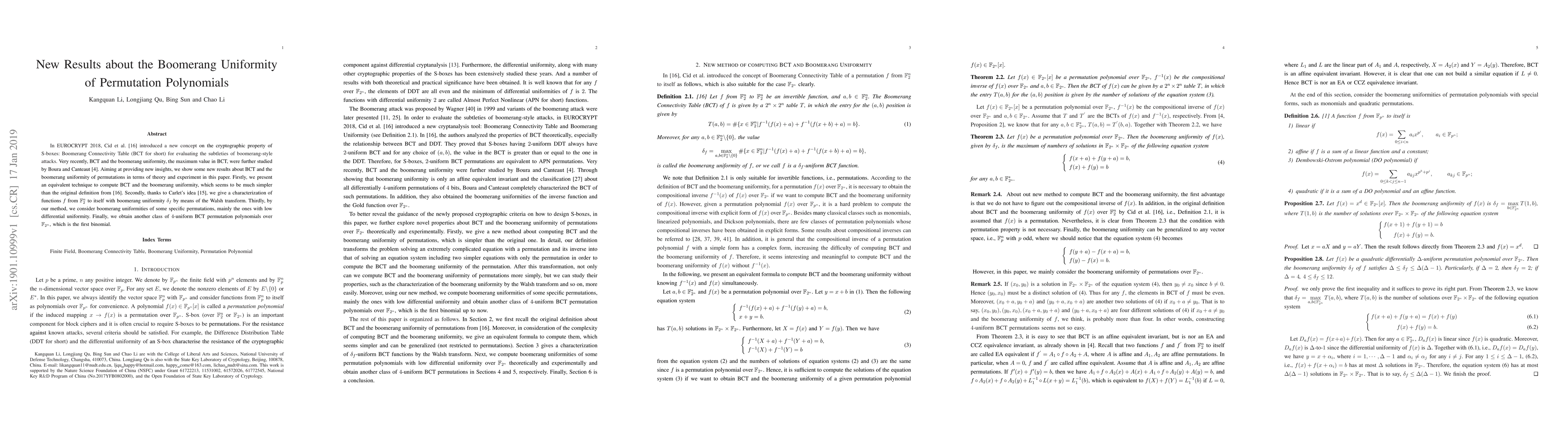 This paper presents new insights into the Boomerang Connectivity Table (BCT) and boomerang uniformity, introducing a simpler technique for computing BCT and a characterization of functions using the Walsh transform. It also explores boomerang uniformities of specific permutations, particularly those with low differential uniformity, and identifies a new class of 4-uniform BCT permutation polynomials.