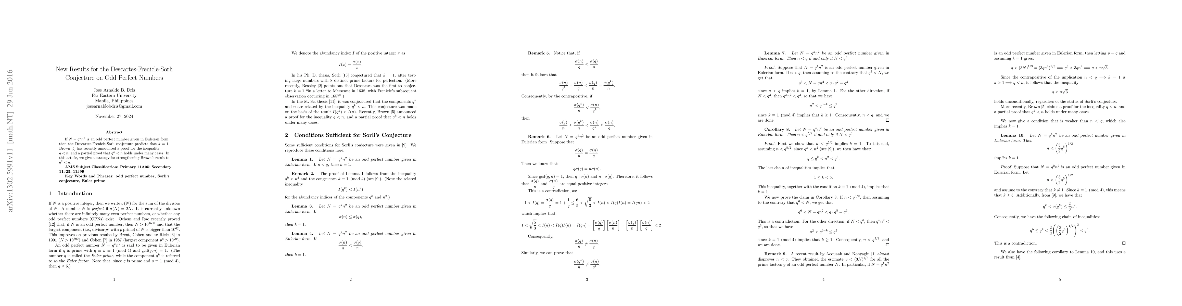 If $N={q^k}{n^2}$ is an odd perfect number given in Eulerian form, then the Descartes-Frenicle-Sorli conjecture predicts that $k=1$. Brown has recently announced a proof for the inequality $q < n$, and a partial proof that $q^k < n$ holds under many cases. In this article, we give a strategy for strengthening Brown's result to $q^2 < n$.