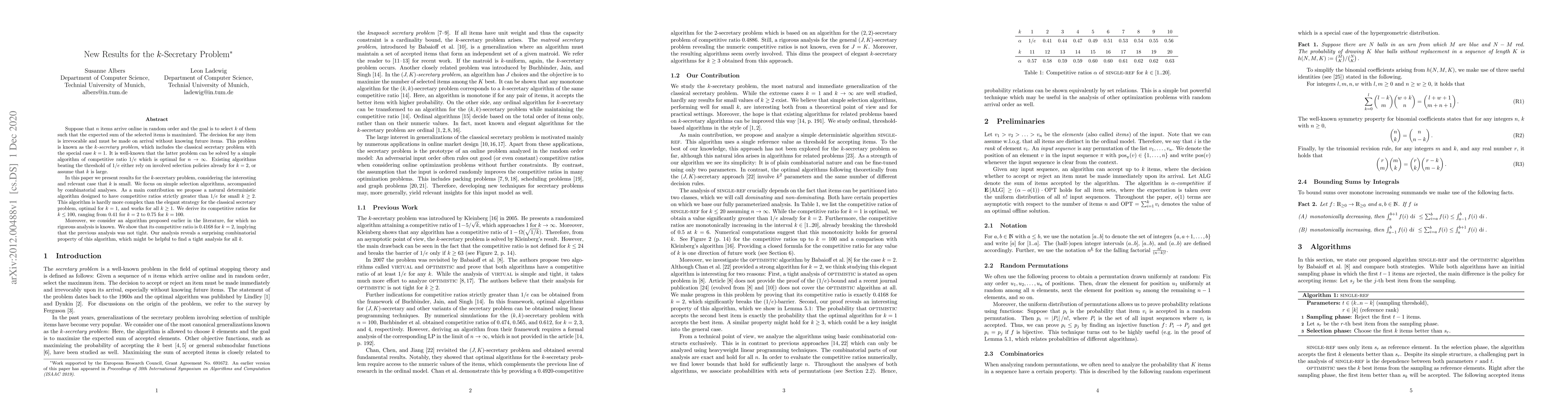 This paper presents new results for the $k$-secretary problem, focusing on simple selection algorithms for small $k$. The authors propose a new deterministic algorithm with competitive ratios exceeding $1/e$ for $k \geq 2$, ranging from $0.41$ to $0.75$ for $k=2$ to $100$. They also analyze an existing algorithm, finding its competitive ratio to be $0.4168$ for $k=2$, and uncover a combinatorial property that may aid in future analyses.