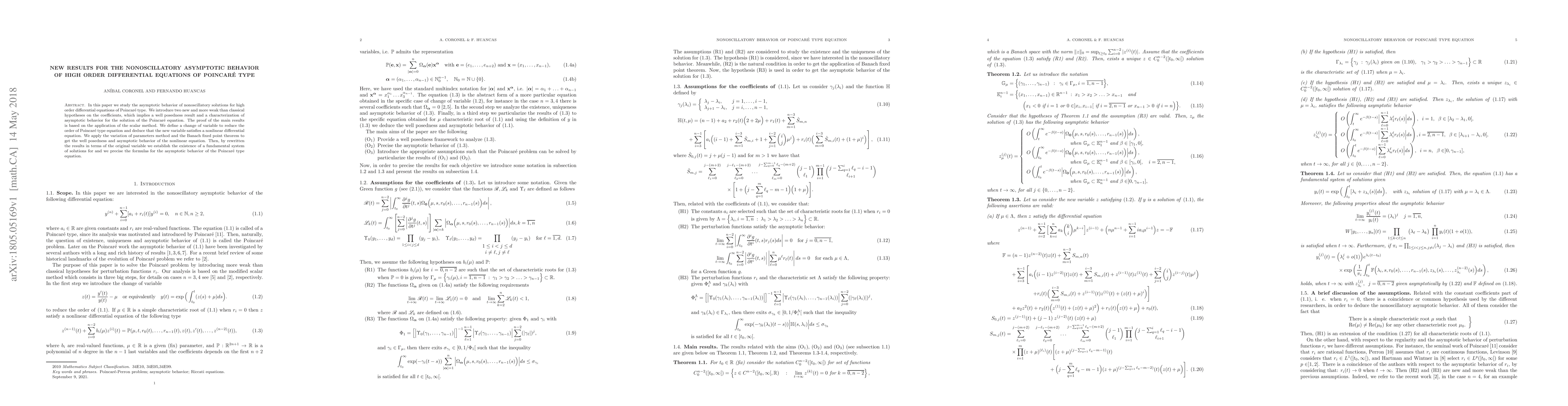This paper investigates the asymptotic behavior of nonoscillatory solutions for high-order differential equations of Poincaré type under new, weaker hypotheses. It establishes well-posedness and characterizes the asymptotic behavior using the scalar method, variation of parameters, and the Banach fixed point theorem.
