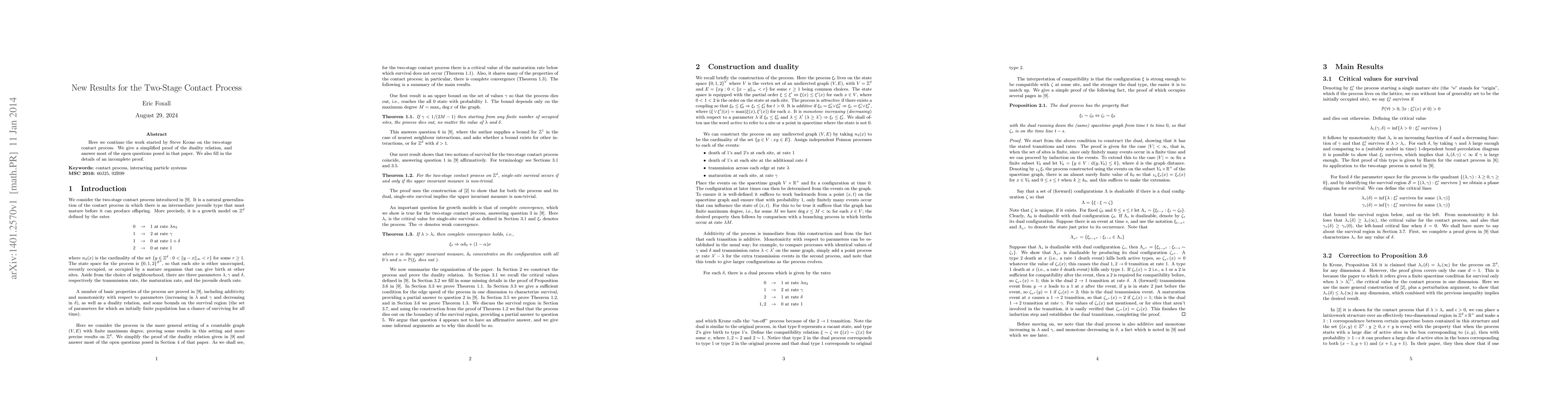 Here we continue the work started by Steve Krone on the two-stage contact process. We give a simplified proof of the duality relation, and answer most of the open questions posed in that paper. We also fill in the details of an incomplete proof.
