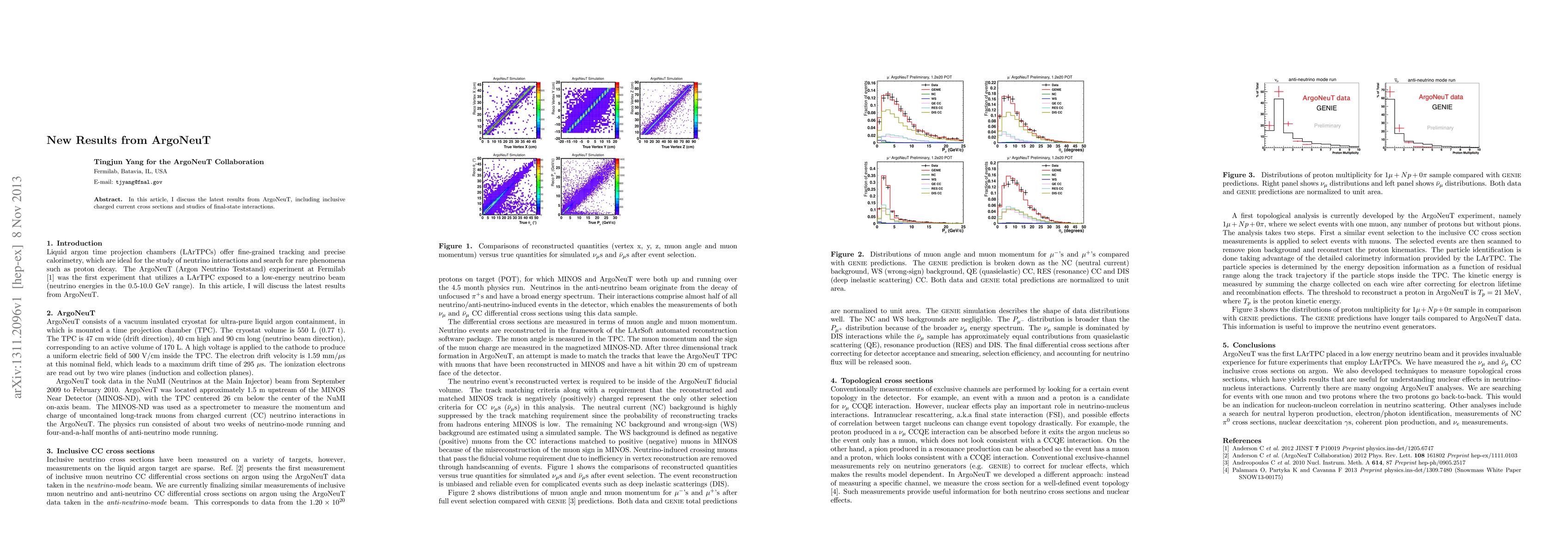 ArgoNeuT reports new results on inclusive charged current cross sections and examines final-state interactions, providing significant insights into neutrino interactions. These findings contribute to the understanding of neutrino behavior and properties.