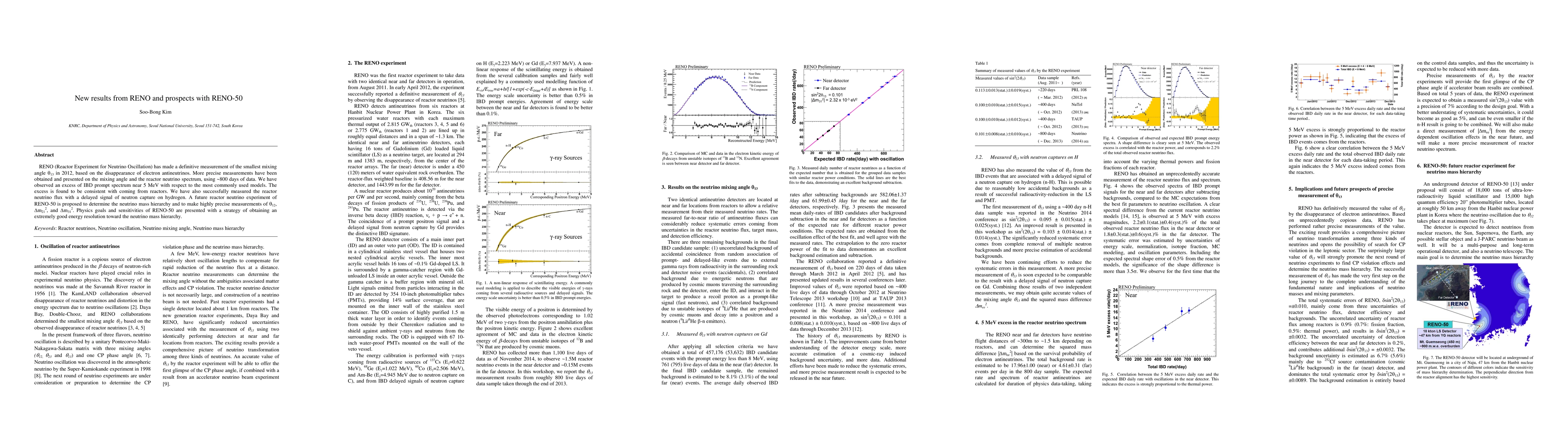 The RENO experiment has made new discoveries about neutrino oscillations, including a detection of an excess in the energy spectrum near 5 MeV, which is consistent with coming from reactors. A future experiment called RENO-50 aims to determine the neutrino mass hierarchy and make precise measurements of other mixing angles.