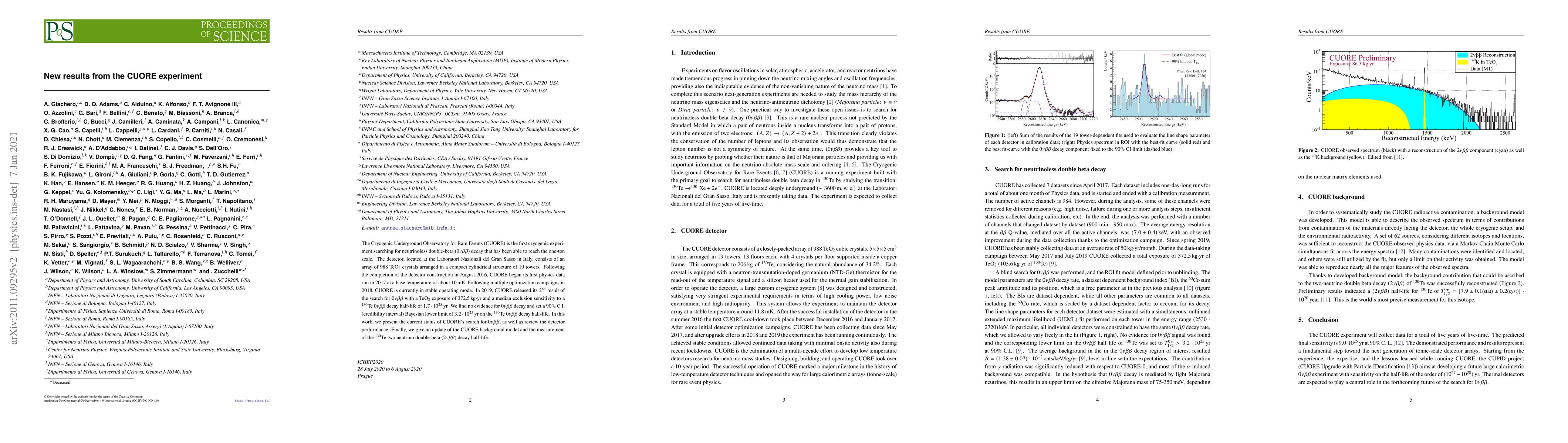 The Cryogenic Underground Observatory for Rare Events (CUORE) is the first cryogenic experiment searching for neutrinoless double-beta ($0\nu\beta\beta$) decay that has been able to reach the one-ton scale. The detector, located at the Laboratori Nazionali del Gran Sasso in Italy, consists of an array of 988 TeO$_2$ crystals arranged in a compact cylindrical structure of 19 towers. Following the completion of the detector construction in August 2016, CUORE began its first physics data run in 2017 at a base temperature of about 10 mK. Following multiple optimization campaigns in 2018, CUORE is currently in stable operating mode. In 2019, CUORE released its 2\textsuperscript{nd} result of the search for $0\nu\beta\beta$ with a TeO$_2$ exposure of 372.5 kg$\cdot$yr and a median exclusion sensitivity to a $^{130}$Te $0\nu\beta\beta$ decay half-life of $1.7\cdot 10^{25}$ yr. We find no evidence for $0\nu\beta\beta$ decay and set a 90\% C.I. (credibility interval) Bayesian lower limit of $3.2\cdot 10^{25}$ yr on the $^{130}$Te $0\nu\beta\beta$ decay half-life. In this work, we present the current status of CUORE's search for $0\nu\beta\beta$, as well as review the detector performance. Finally, we give an update of the CUORE background model and the measurement of the $^{130}$Te two neutrino double-beta ($2\nu\beta\beta$) decay half-life.