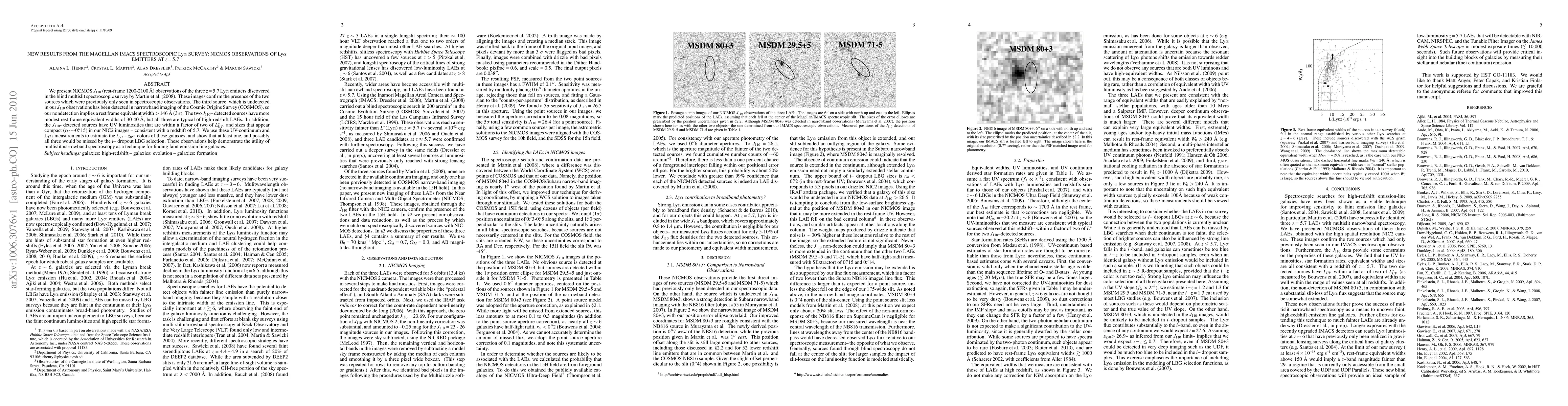 We present NICMOS J110 (rest-frame 1200-2100 A) observations of the three z=5.7 Lyman Alpha emitters discovered in the blind multislit spectroscopic survey by Martin et al. (2008). These images confirm the presence of the two sources which were previously only seen in spectroscopic observations. The third source, which is undetected in our J110 observations has been detected in narrowband imaging of the Cosmic Origins Survey (COSMOS), so our nondetection implies a rest frame equivalent width >146 Angstroms (3 sigma). The two J110-- detected sources have more modest rest frame equivalent widths of 30-40 Angstroms, but all three are typical of high-redshift LAEs. In addition, the J110- detected sources have UV luminosities that are within a factor of two of L*_{UV}, and sizes that appear compact (r_{hl} ~ 0."15) in our NIC2 images -- consistent with a redshift of 5.7. We use these UV-continuum and Lyman Alpha measurements to estimate the i-z colors of these galaxies, and show that at least one, and possibly all three would be missed by the i-dropout LBG selection. These observations help demonstrate the utility of multislit narrowband spectroscopy as a technique for finding faint emission line galaxies.