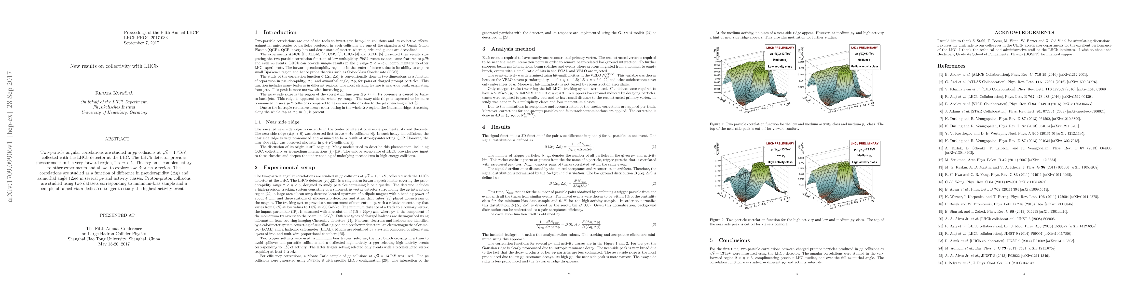 Two-particle angular correlations are studied in $pp$ collisions at $\sqrt{s}=\,13\,$TeV, collected with the LHCb detector at the LHC. The LHCb detector provides measurement in the very forward region, $2 < \eta < 5$. This region is complementary to other experiments and allows to explore low Bjorken-$x$ region. The correlations are studied as a function of difference in pseudorapidity $\left(\Delta\eta\right)$ and azimuthal angle $\left(\Delta\phi\right)$ in several $p_T$ and activity classes. Proton-proton collisions are studied using two datasets corresponding to minimum-bias sample and a sample obtained via a dedicated trigger to study the highest-activity events.