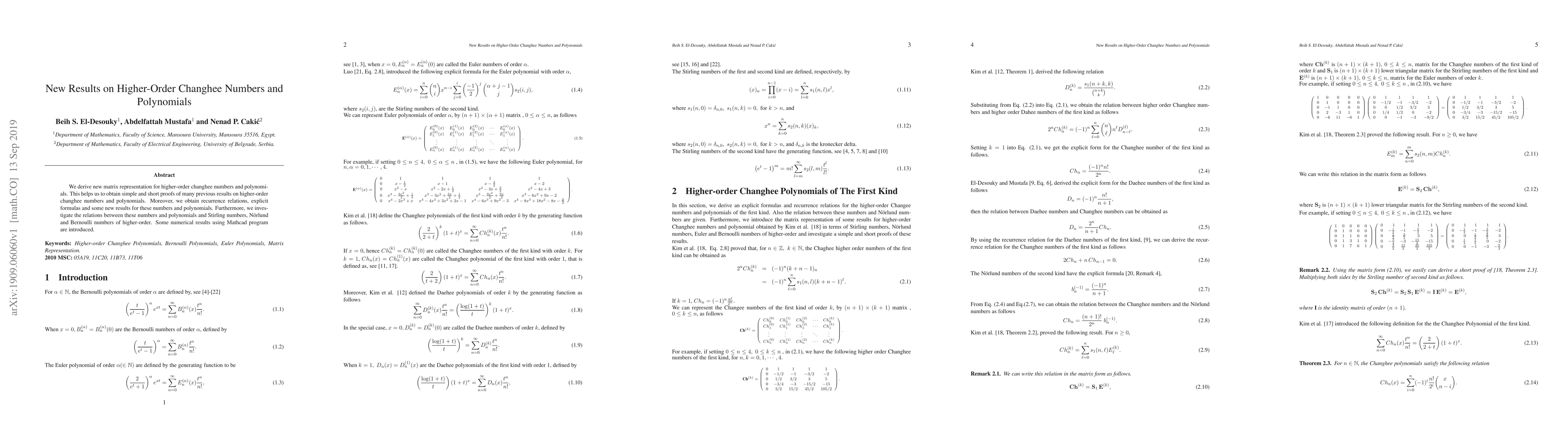 This paper presents a new matrix representation for higher-order Changhee numbers and polynomials, facilitating simpler proofs and derivations. It also uncovers recurrence relations, explicit formulas, and new findings, while exploring connections to Stirling, Norlund, and Bernoulli numbers. Numerical results are demonstrated using Mathcad.