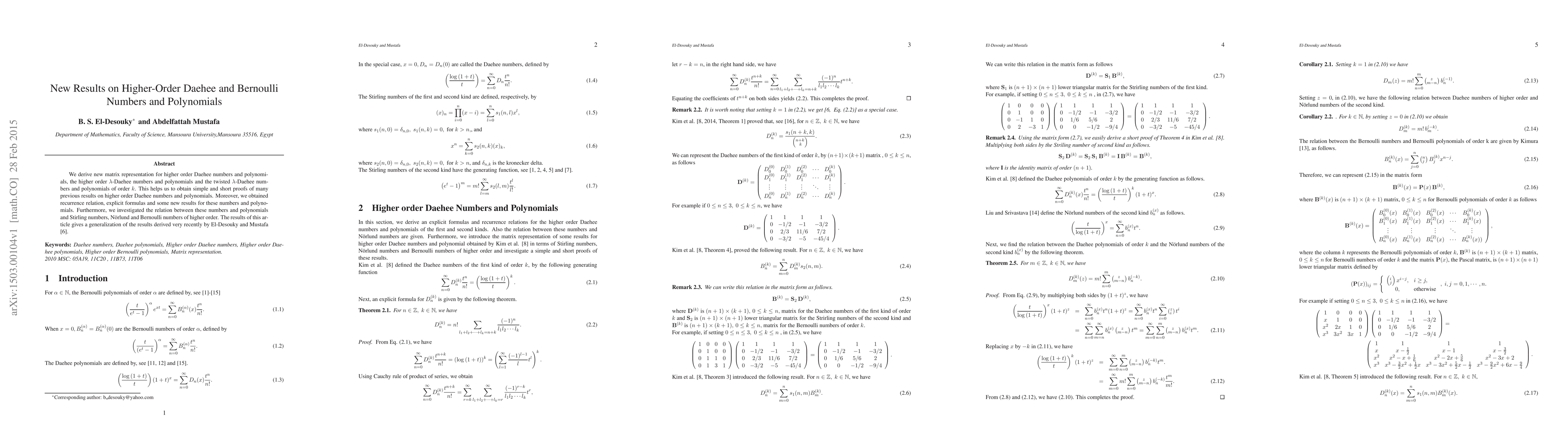 This paper introduces new matrix representations for higher-order Daehee, lambda-Daehee, and twisted lambda-Daehee numbers and polynomials, providing simplified proofs and new recurrence relations, explicit formulas, and connections with Stirling, Norlund, and Bernoulli numbers. The findings generalize recent results by El-Desouky and Mustafa.