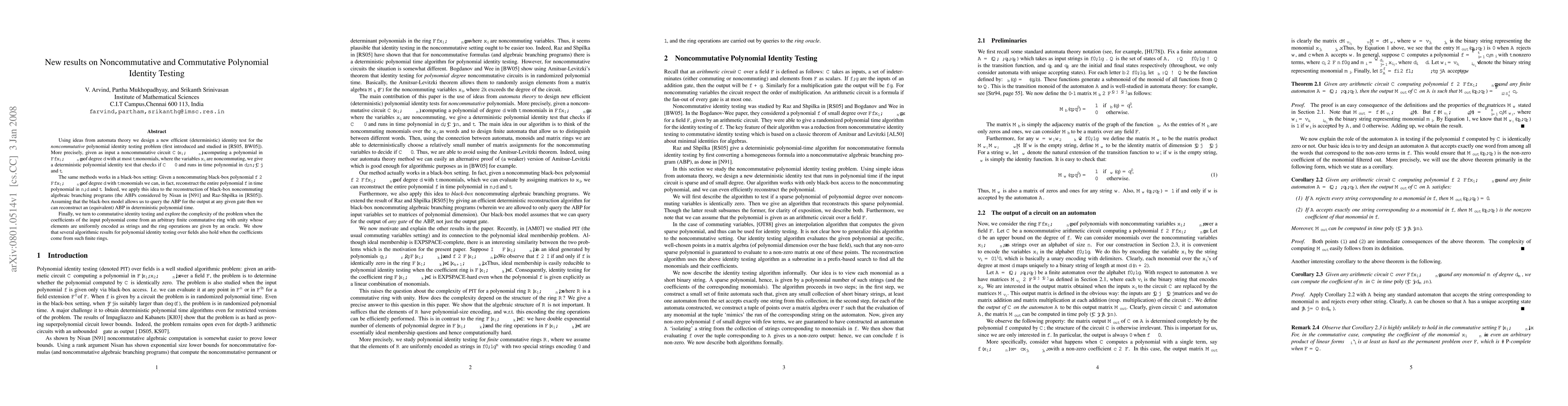 V. Arvind, Abhranil Chatterjee, Partha Mukhopadhyay et al.