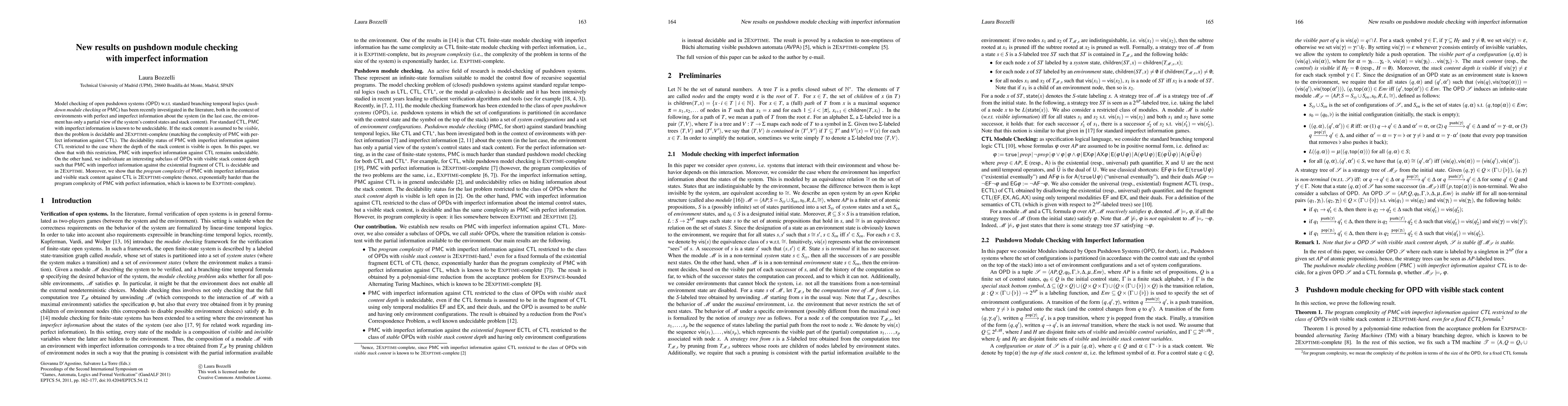 Researchers show that model checking of open pushdown systems with imperfect information against CTL is undecidable when stack content depth is visible, but find a decidable case for a subclass of systems.