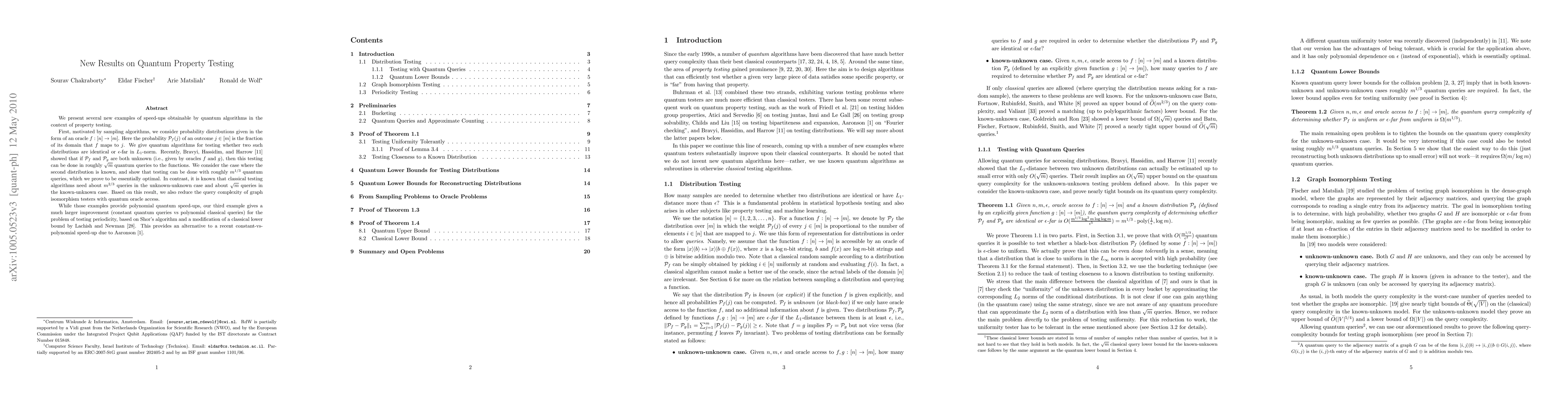We present several new examples of speed-ups obtainable by quantum algorithms in the context of property testing. First, motivated by sampling algorithms, we consider probability distributions given in the form of an oracle $f:[n]\to[m]$. Here the probability $\PP_f(j)$ of an outcome $j\in[m]$ is the fraction of its domain that $f$ maps to $j$. We give quantum algorithms for testing whether two such distributions are identical or $\epsilon$-far in $L_1$-norm. Recently, Bravyi, Hassidim, and Harrow \cite{BHH10} showed that if $\PP_f$ and $\PP_g$ are both unknown (i.e., given by oracles $f$ and $g$), then this testing can be done in roughly $\sqrt{m}$ quantum queries to the functions. We consider the case where the second distribution is known, and show that testing can be done with roughly $m^{1/3}$ quantum queries, which we prove to be essentially optimal. In contrast, it is known that classical testing algorithms need about $m^{2/3}$ queries in the unknown-unknown case and about $\sqrt{m}$ queries in the known-unknown case. Based on this result, we also reduce the query complexity of graph isomorphism testers with quantum oracle access. While those examples provide polynomial quantum speed-ups, our third example gives a much larger improvement (constant quantum queries vs polynomial classical queries) for the problem of testing periodicity, based on Shor's algorithm and a modification of a classical lower bound by Lachish and Newman \cite{lachish&newman:periodicity}. This provides an alternative to a recent constant-vs-polynomial speed-up due to Aaronson \cite{aaronson:bqpph}.