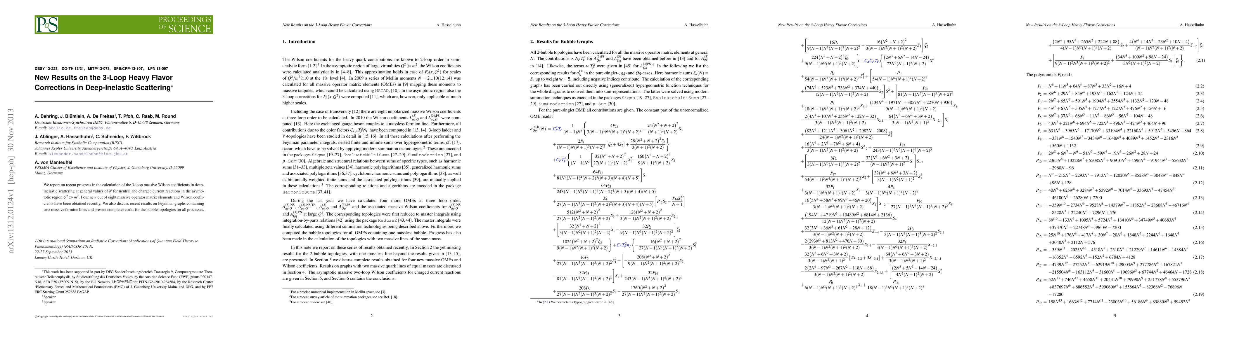 We report on recent progress in the calculation of the 3-loop massive Wilson coefficients in deep-inelastic scattering at general values of $N$ for neutral and charged current reactions in the asymptotic region $Q^2 \gg m^2$. Four new out of eight massive operator matrix elements and Wilson coefficients have been obtained recently. We also discuss recent results on Feynman graphs containing two-massive fermion lines and present complete results for the bubble topologies for all processes.