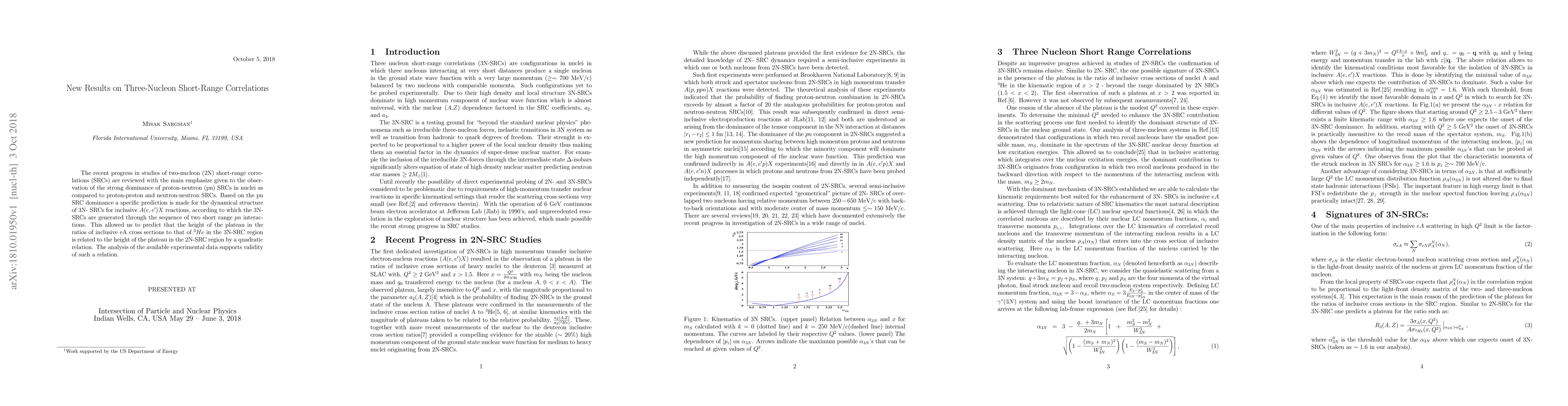 This paper reviews recent advances in two-nucleon short-range correlations, emphasizing the dominance of proton-neutron correlations over others. It proposes a specific structure for three-nucleon short-range correlations, suggesting they arise from sequential proton-neutron interactions, and predicts a quadratic relationship between the heights of plateaus in inclusive electron scattering cross sections for 2N and 3N short-range correlations, supported by experimental data.