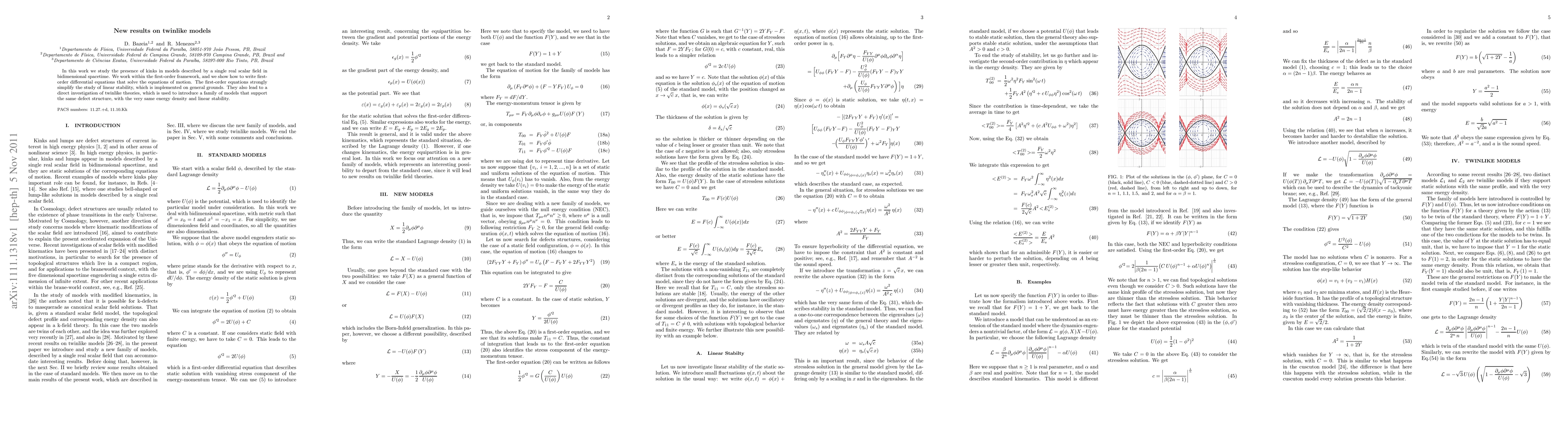 This paper explores the presence of kinks in bidimensional models with a single real scalar field, utilizing first-order differential equations to simplify the study of linear stability and introduce a family of twinlike theories with identical defect structures and energy densities.