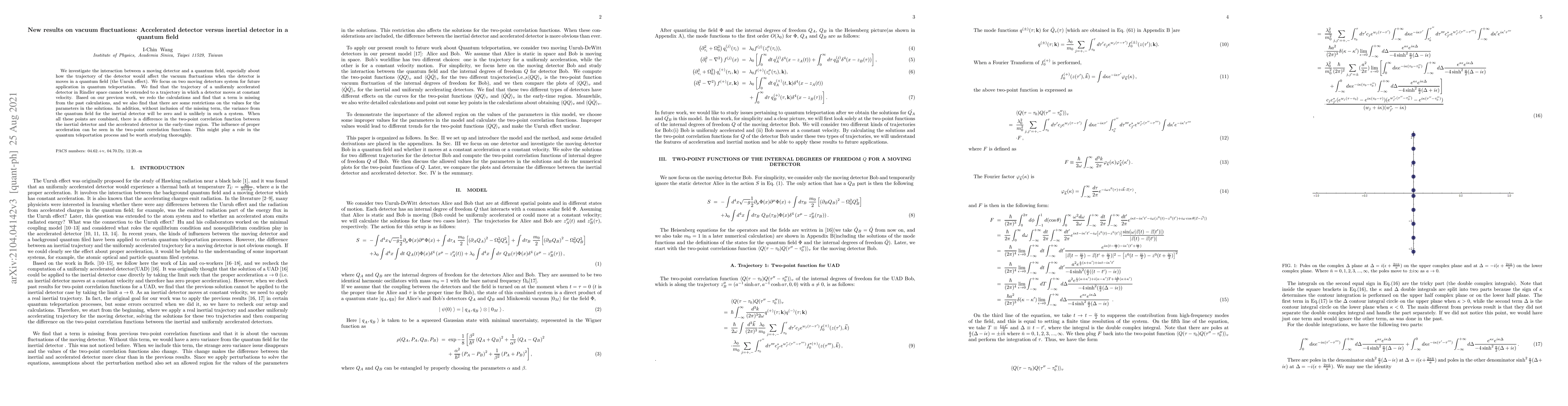 This paper investigates the interaction between a quantum field and detectors in different motion states, revealing that the Unruh effect causes differences in vacuum fluctuations between uniformly accelerated and inertial detectors. The study corrects previous calculations, highlighting the importance of proper acceleration in the two-point correlation functions, which may influence quantum teleportation.