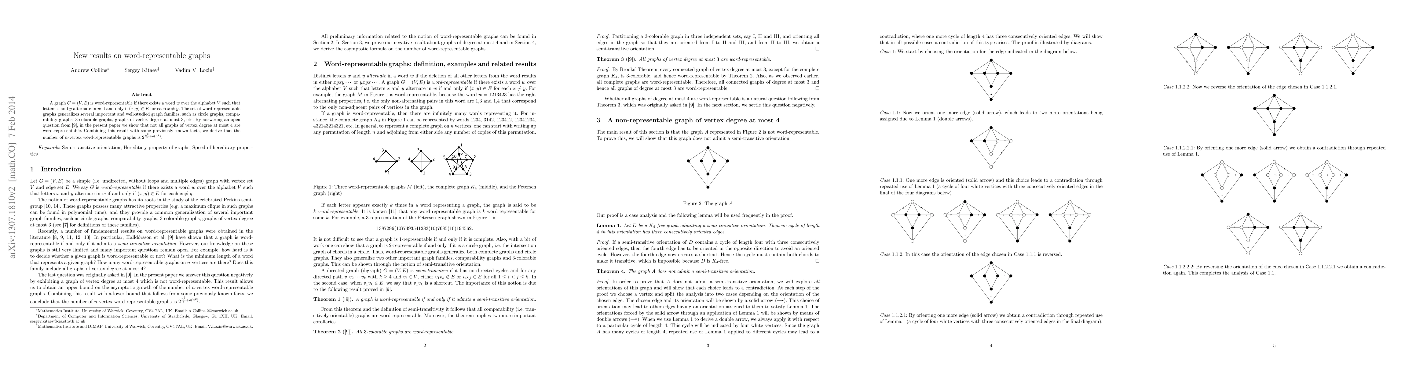 A graph $G=(V,E)$ is word-representable if there exists a word $w$ over the alphabet $V$ such that letters $x$ and $y$ alternate in $w$ if and only if $(x,y)\in E$ for each $x\neq y$. The set of word-representable graphs generalizes several important and well-studied graph families, such as circle graphs, comparability graphs, 3-colorable graphs, graphs of vertex degree at most 3, etc. By answering an open question from [M. Halldorsson, S. Kitaev and A. Pyatkin, Alternation graphs, Lect. Notes Comput. Sci. 6986 (2011) 191--202. Proceedings of the 37th International Workshop on Graph-Theoretic Concepts in Computer Science, WG 2011, Tepla Monastery, Czech Republic, June 21-24, 2011.], in the present paper we show that not all graphs of vertex degree at most 4 are word-representable. Combining this result with some previously known facts, we derive that the number of $n$-vertex word-representable graphs is $2^{\frac{n^2}{3}+o(n^2)}$.