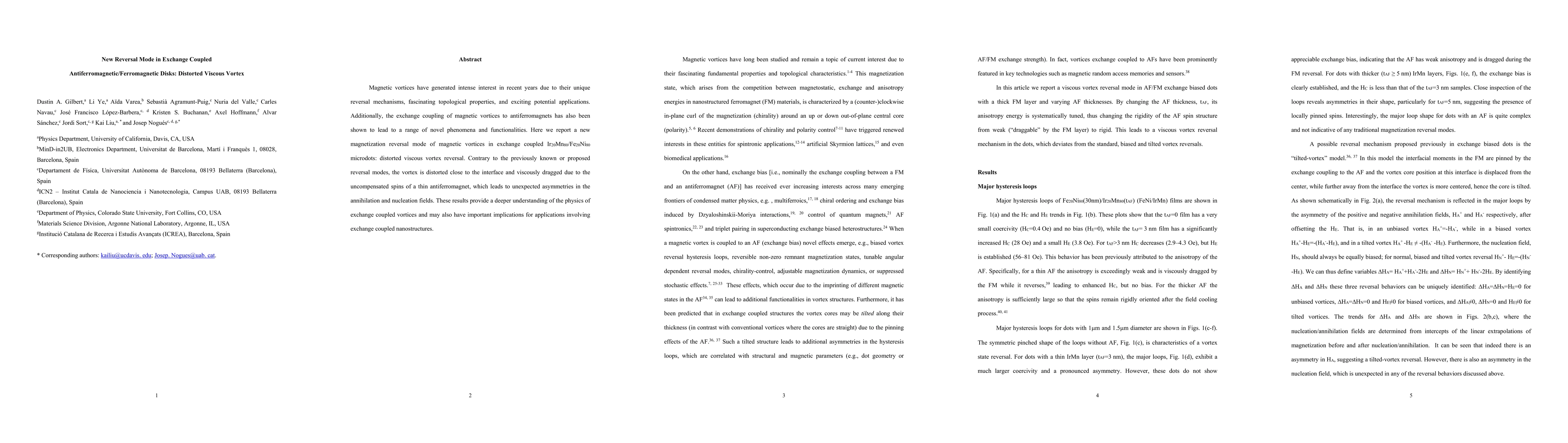 Researchers discovered a new reversal mode in magnetic vortices with exchange coupling to antiferromagnets, where the vortex is distorted near the interface and dragged due to uncompensated spins.