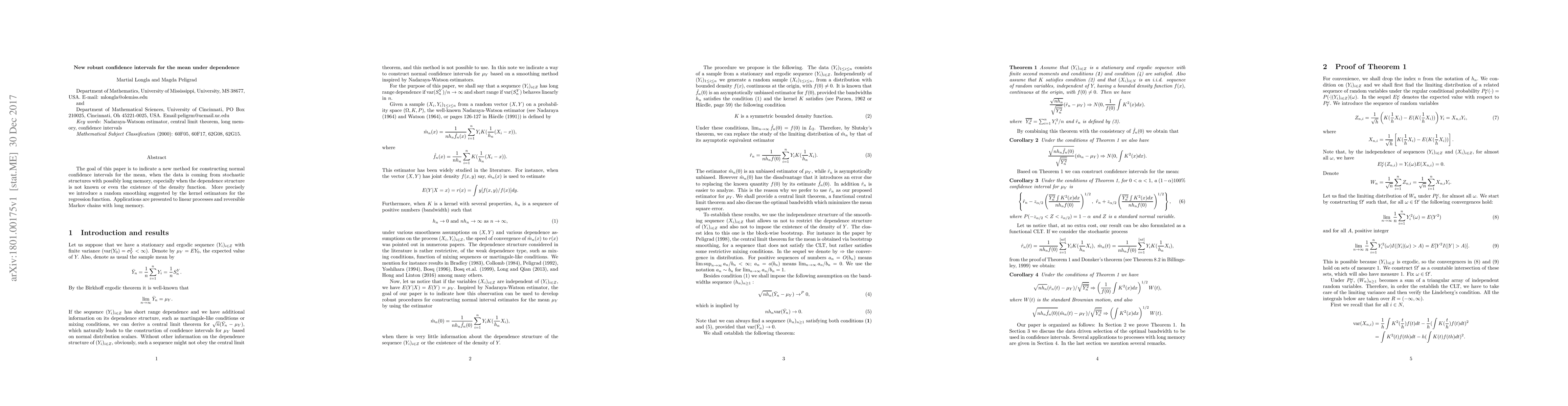 The goal of this paper is to indicate a new method for constructing normal confidence intervals for the mean, when the data is coming from stochastic structures with possibly long memory, especially when the dependence structure is not known or even the existence of the density function. More precisely we introduce a random smoothing suggested by the kernel estimators for the regression function. Applications are presented to linear processes and reversible Markov chains with long memory.