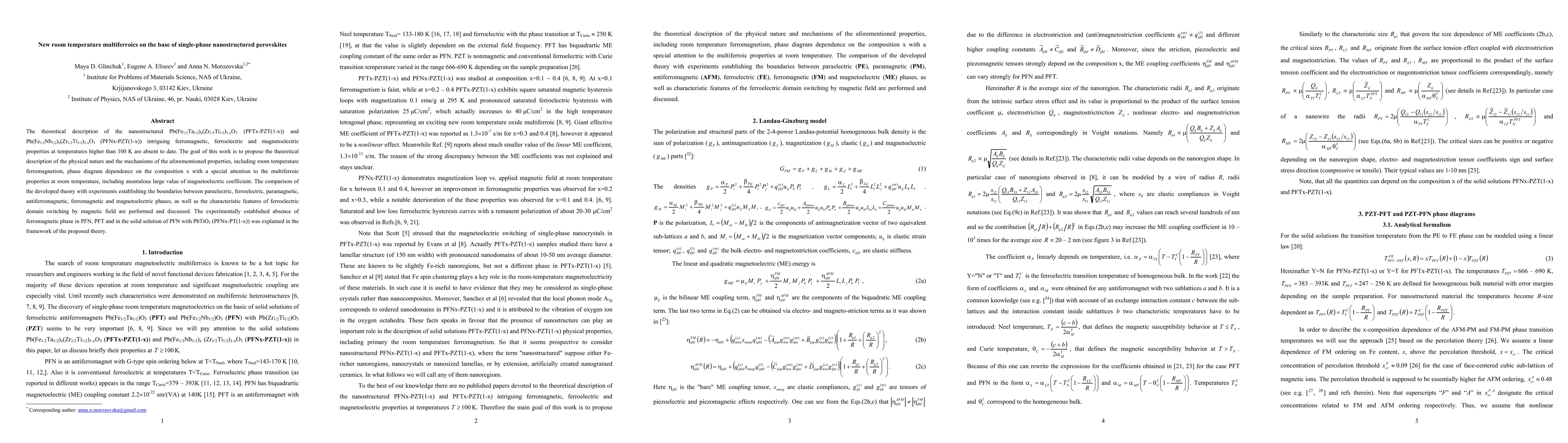 Researchers propose a new theory for room temperature multiferroics in single-phase nanostructured perovskites, showing ferromagnetic, ferroelectric, and magnetoelectric properties at high temperatures. The study explains experimental findings of absent ferromagnetism in certain compounds.