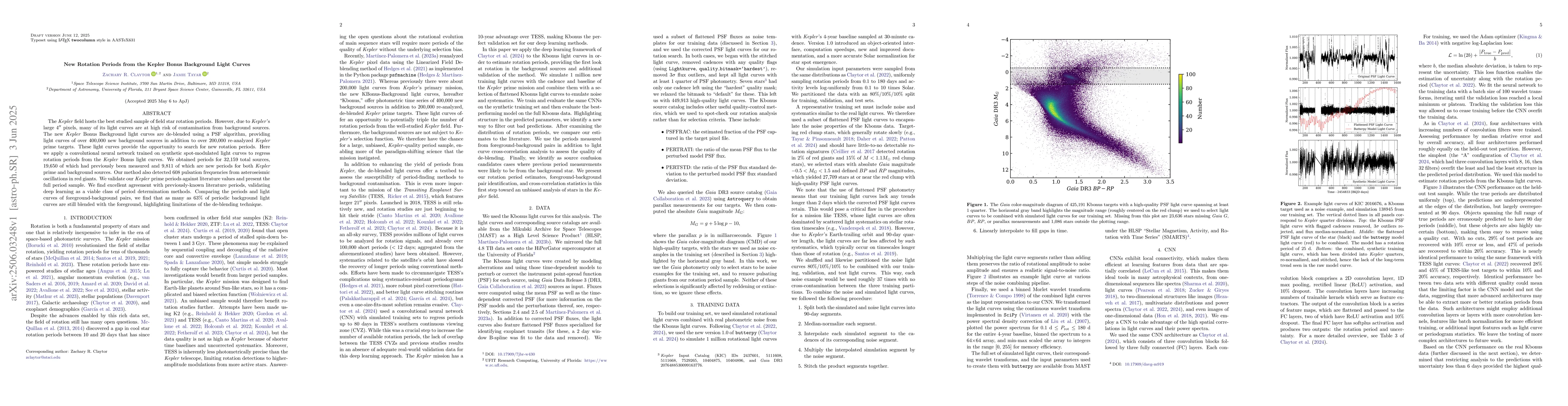 The research applies a convolutional neural network trained on synthetic spot-modulated light curves to regress rotation periods from the Kepler Bonus light curves, which have been de-blended using a PSF algorithm.