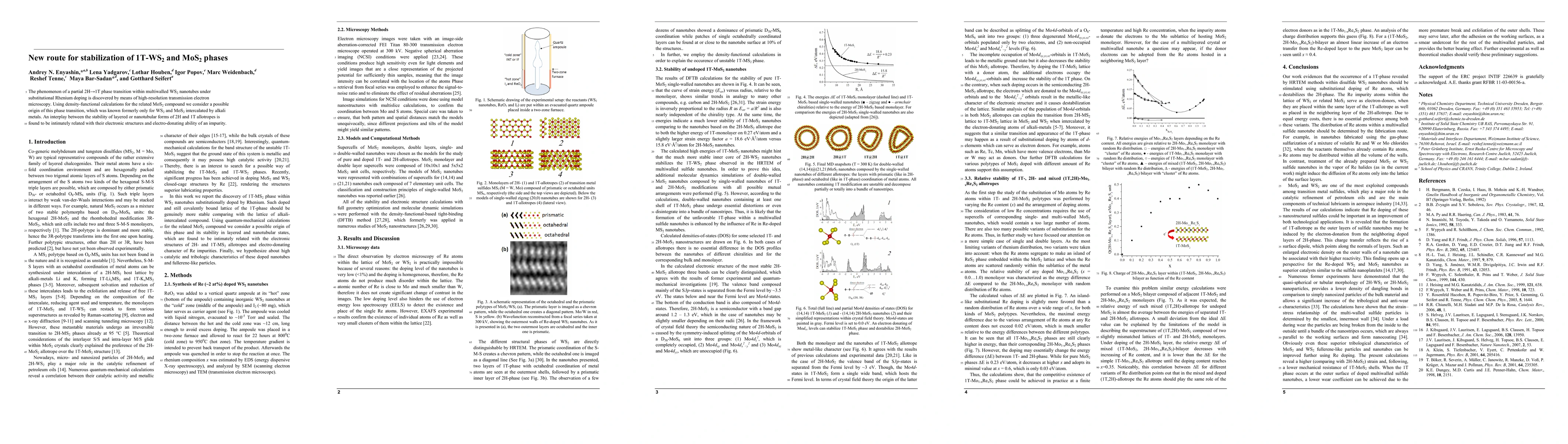 This paper discovers a partial 2H→1T phase transition in Rhenium-doped WS2 nanotubes via high-resolution microscopy, and explores its origin in MoS2 using density-functional calculations, revealing that the stability of 1T phases is linked to electronic structure and the electro-donating nature of impurities.