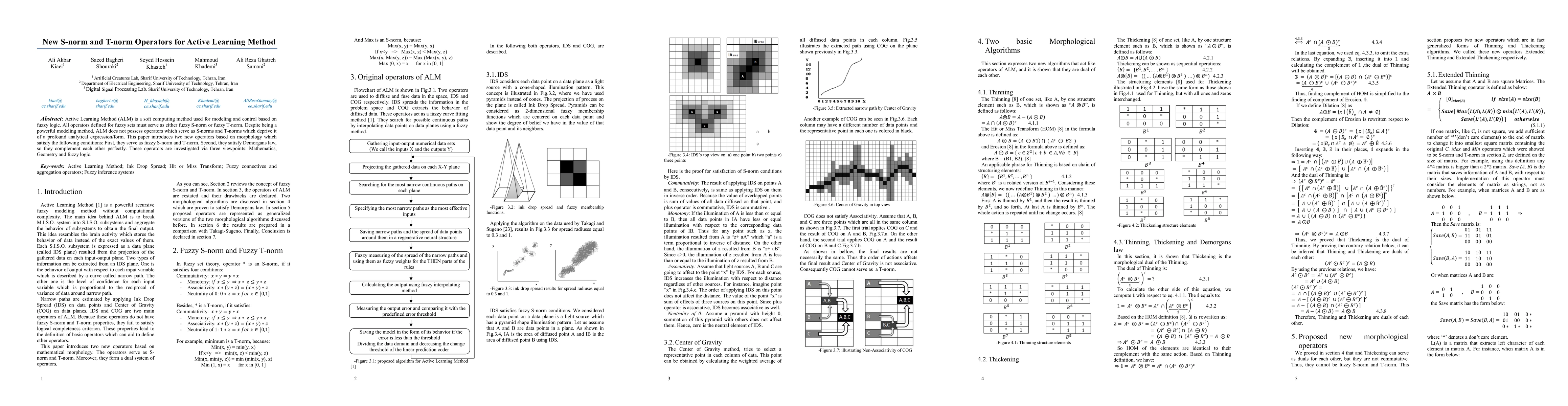 This paper introduces two new S-norm and T-norm operators for the Active Learning Method (ALM) based on morphology, which satisfy De Morgan's law and are analyzed through mathematical, geometric, and fuzzy logic perspectives. These operators aim to provide a more profound analytical expression for ALM.